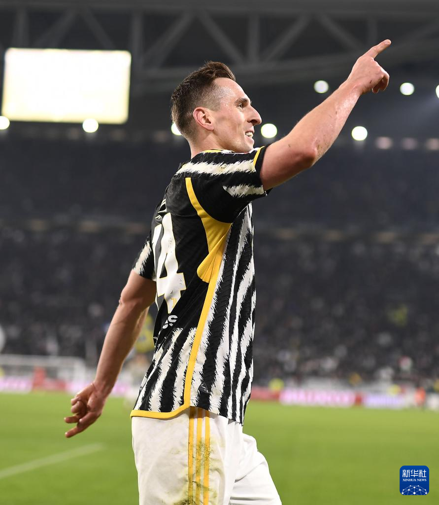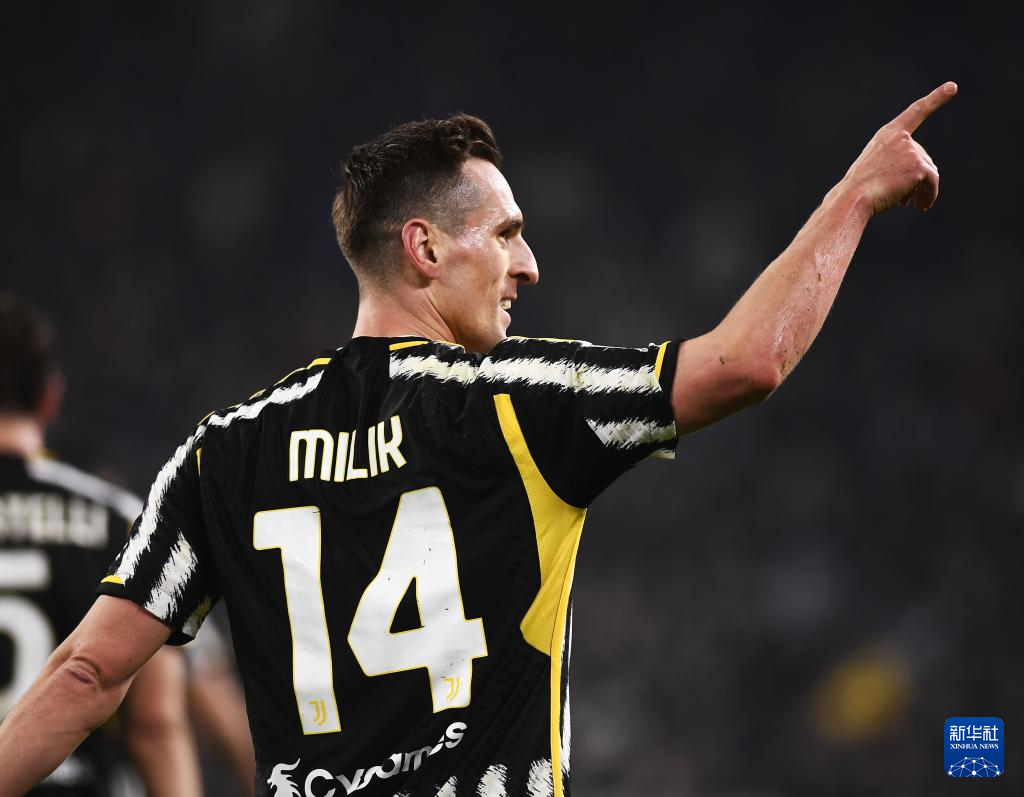 1月11日,尤文图斯队球员米利克庆祝比赛首个进球。新华社发(费代里科·塔尔迪托摄)