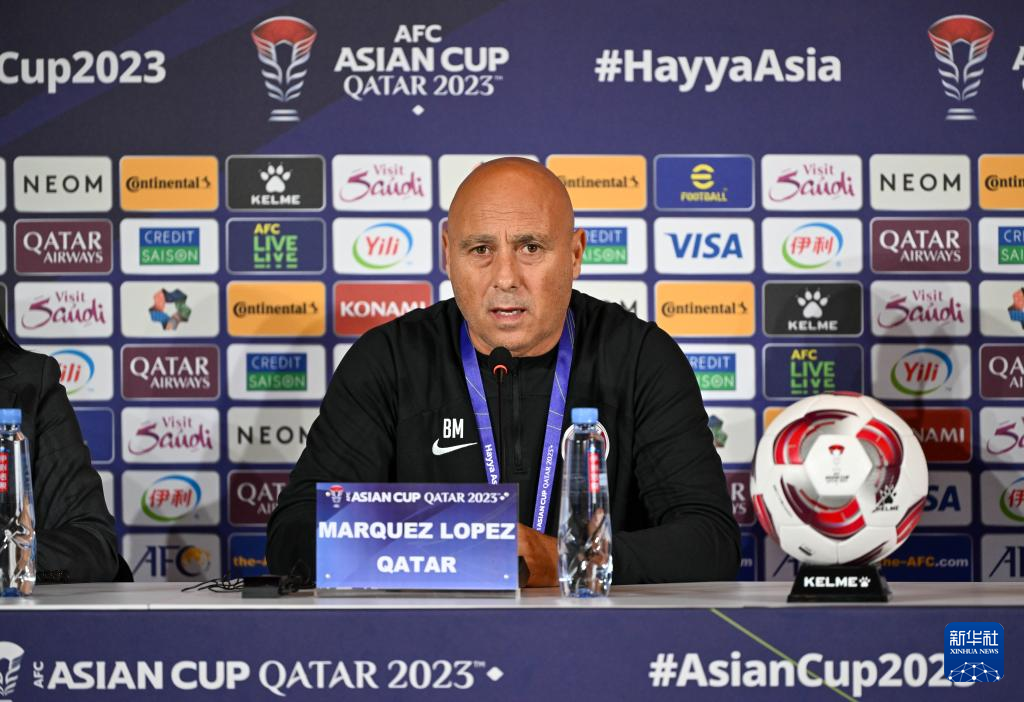 1月11日,卡塔尔队主教练巴托洛梅·马尔克斯在新闻发布会上。新华社记者 孙凡越 摄
