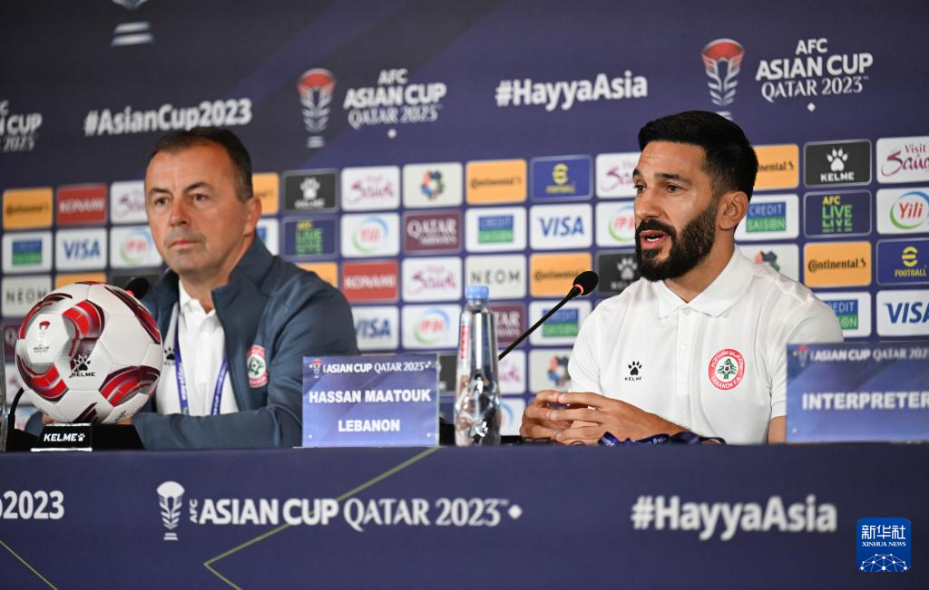 1月11日,黎巴嫩队球员哈桑·马图克(右)在新闻发布会上。新华社记者 孙凡越 摄