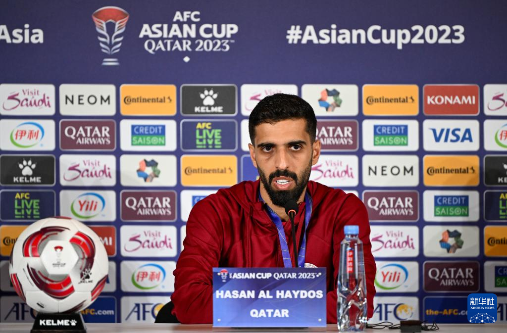 1月11日,卡塔尔队球员哈桑·海多斯在新闻发布会上。新华社记者 孙凡越 摄