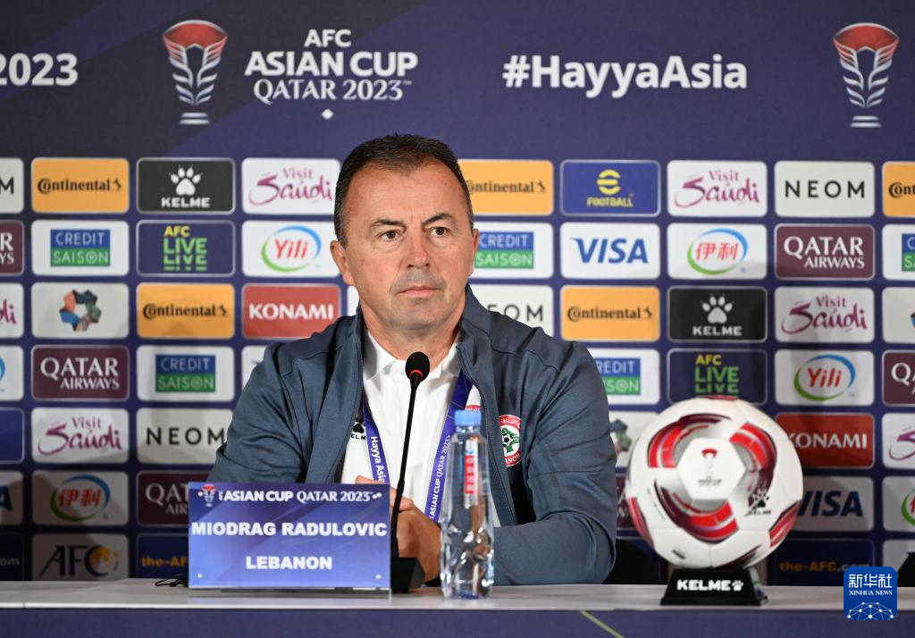 1月11日,黎巴嫩队主教练米奥德拉格·拉杜诺维奇在新闻发布会上。新华社记者 孙凡越 摄