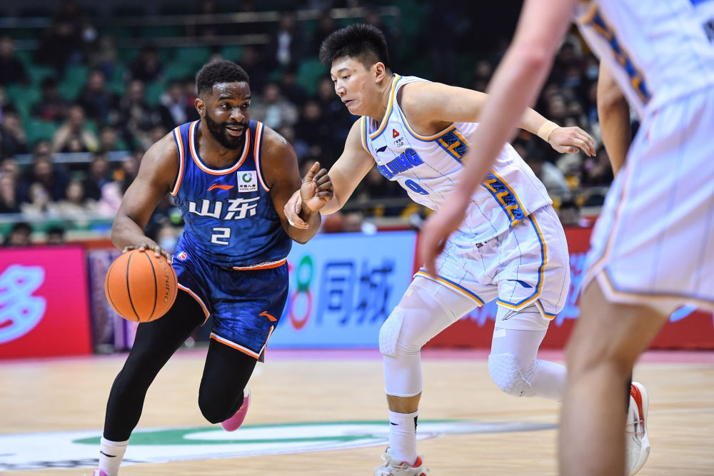 1月12日,山东队球员阿曼德(左)在比赛中突破。新华社记者 朱峥 摄