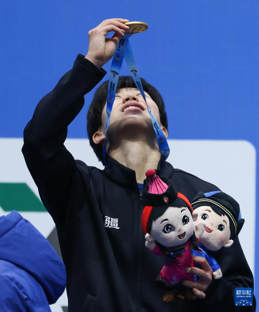 1月13日,新疆队选手田芮宁夺冠后庆祝。新华社记者 王楷焱 摄