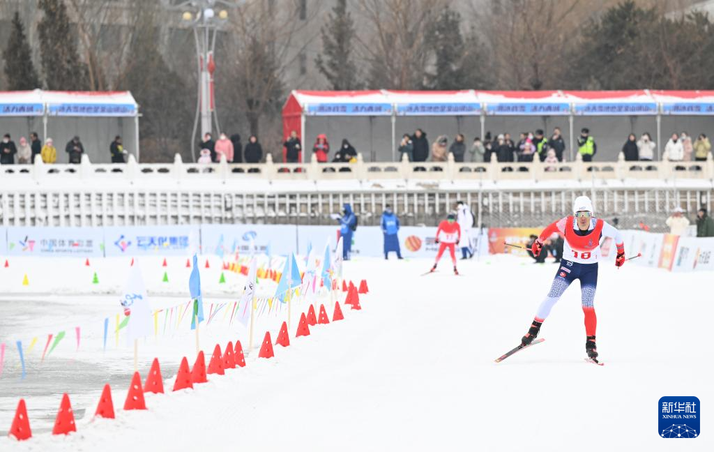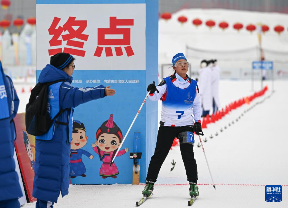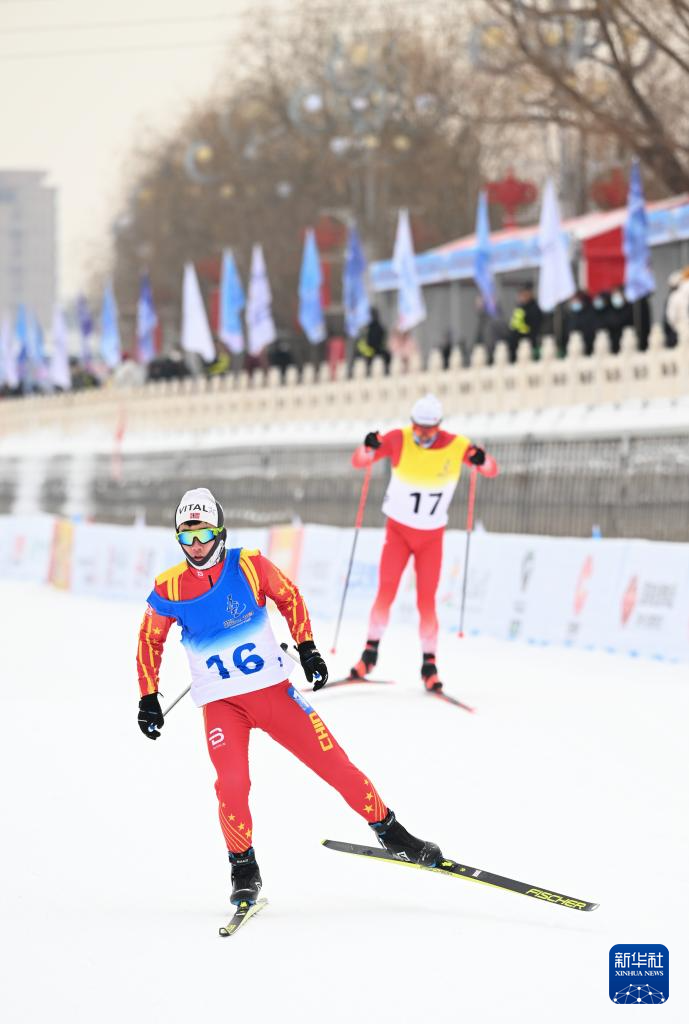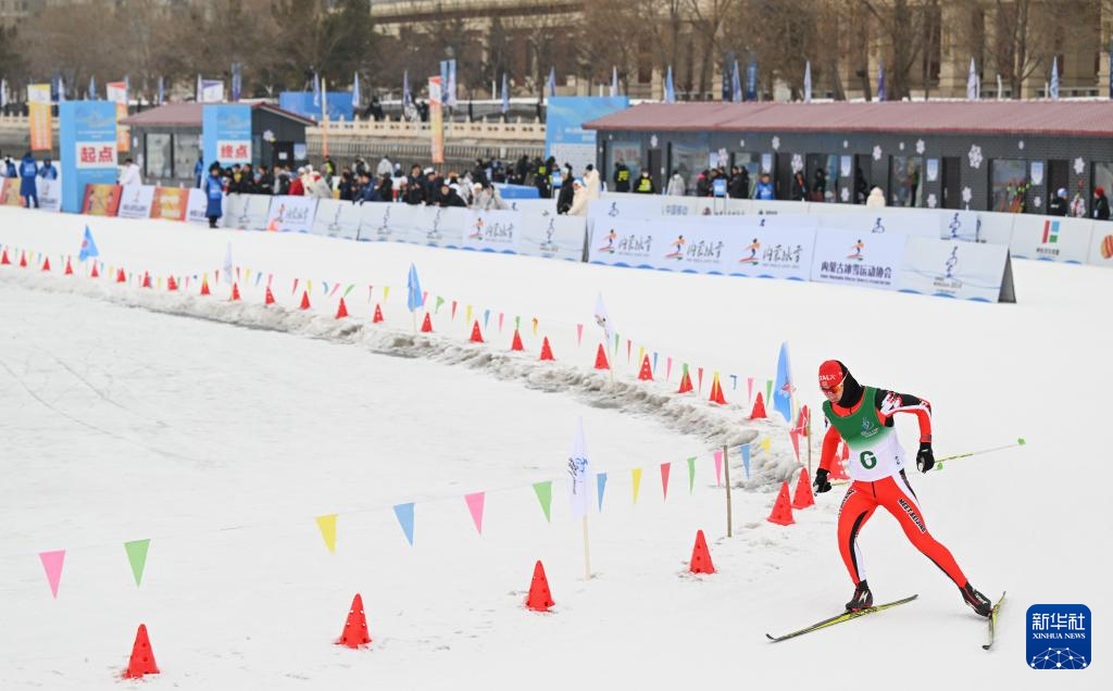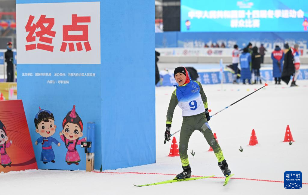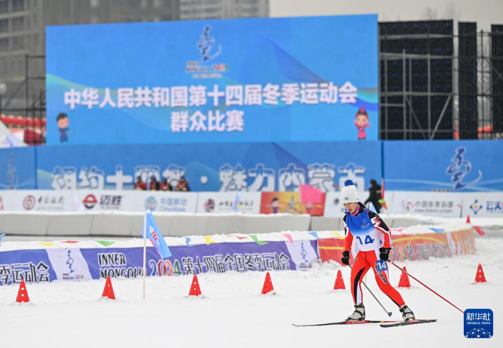 当日,第十四届全国冬季运动会群众越野滑雪比赛在内蒙古呼和浩特市东河冰场开赛。