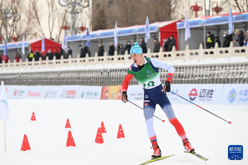 1月13日,黑龙江队选手王博文在男子4X1.5公里团体接力(自由技术)比赛中。新华社记者 贝赫 摄
