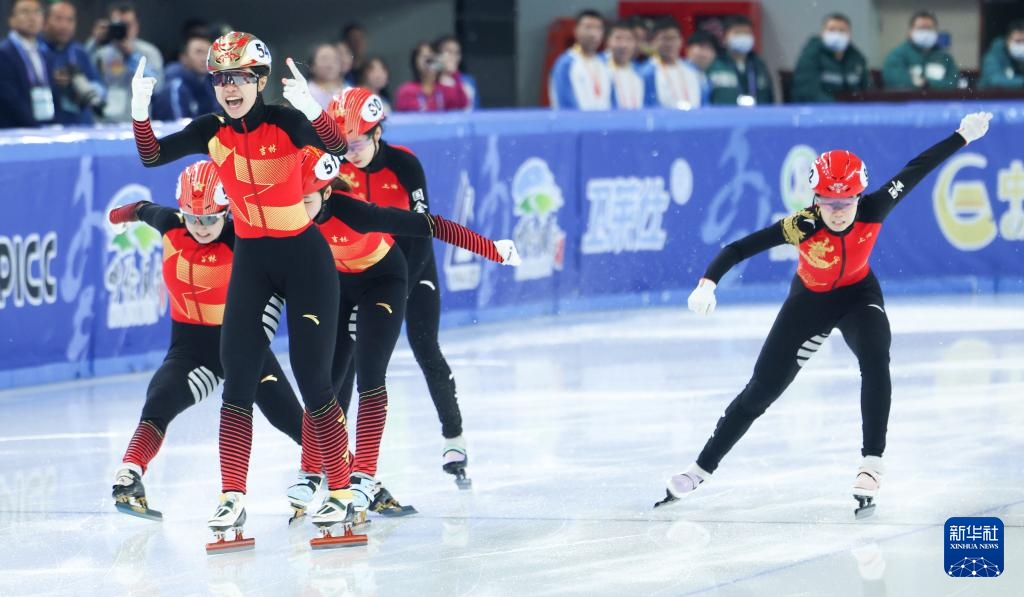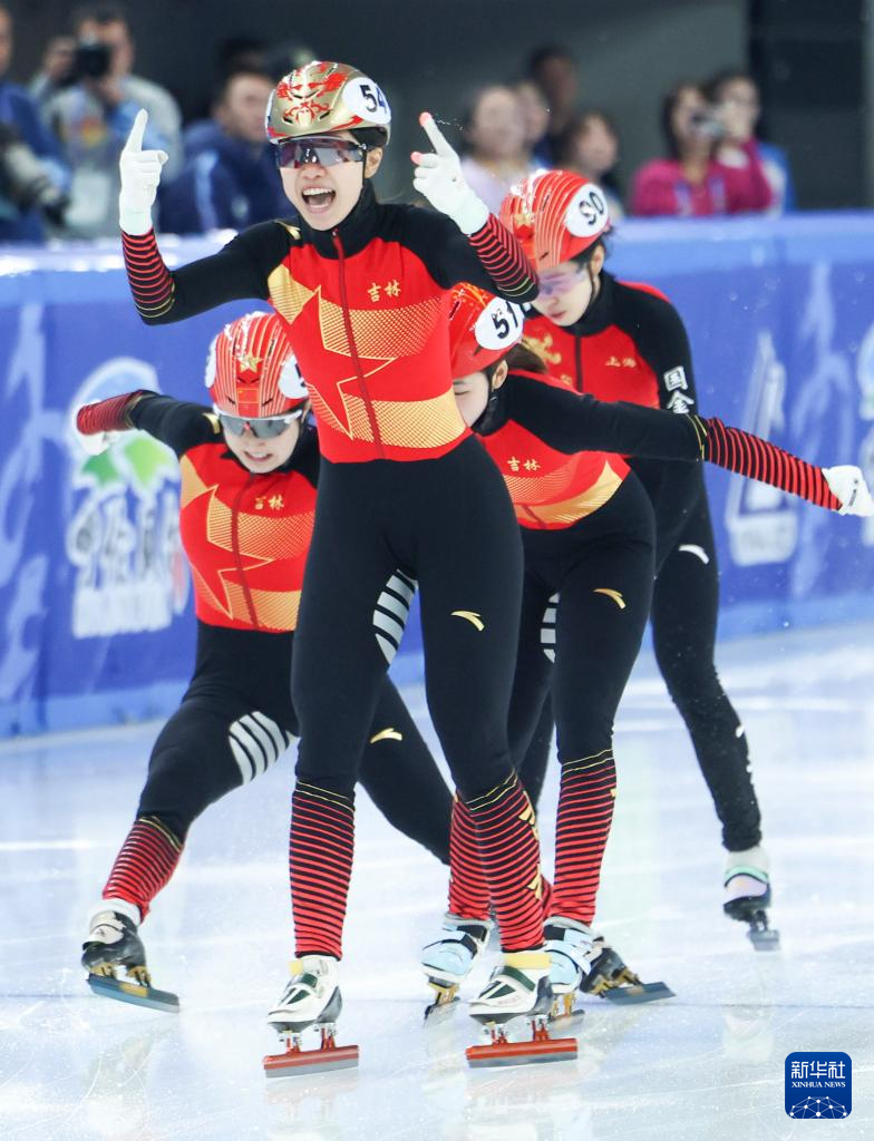 1月13日,吉林队选手王晔(左二)夺冠后庆祝。新华社记者 王楷焱 摄