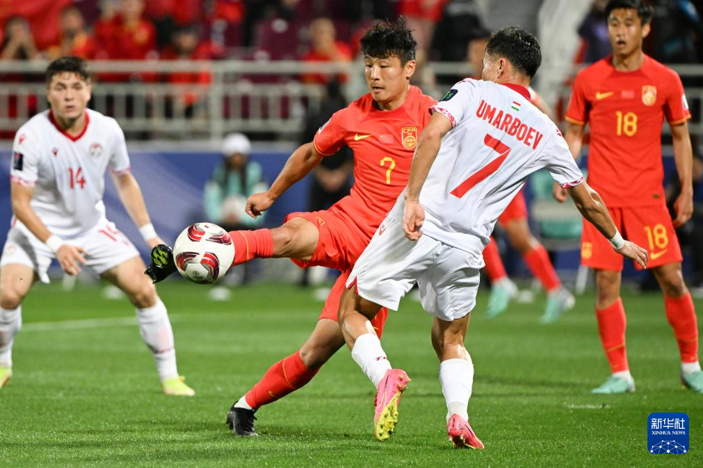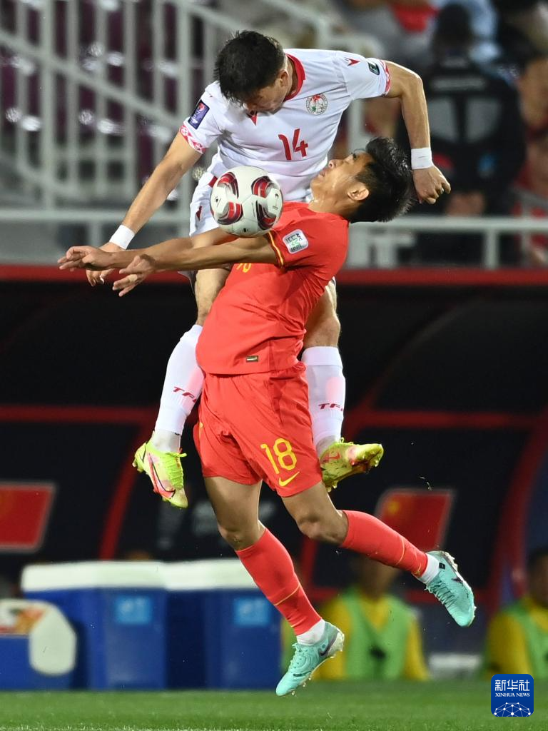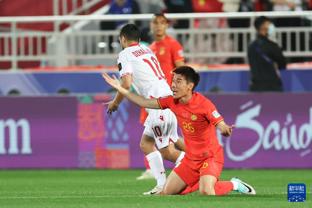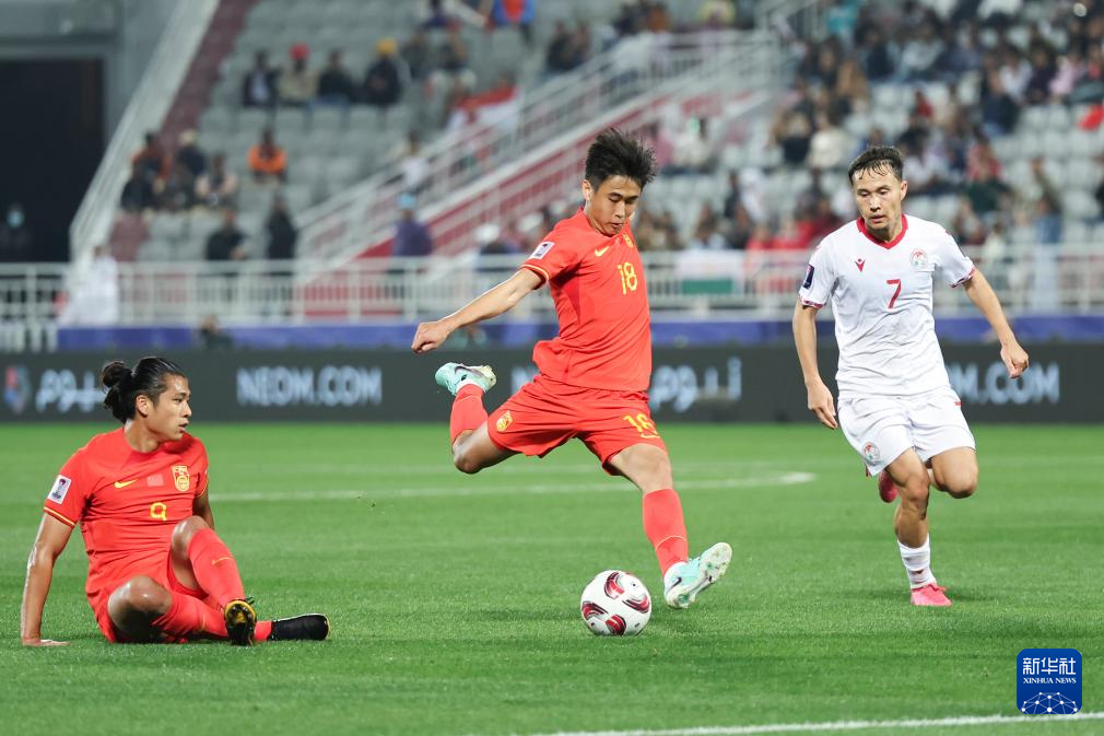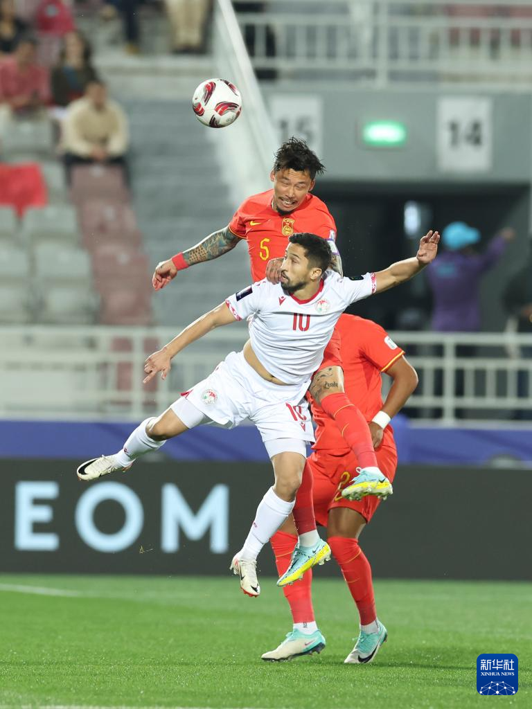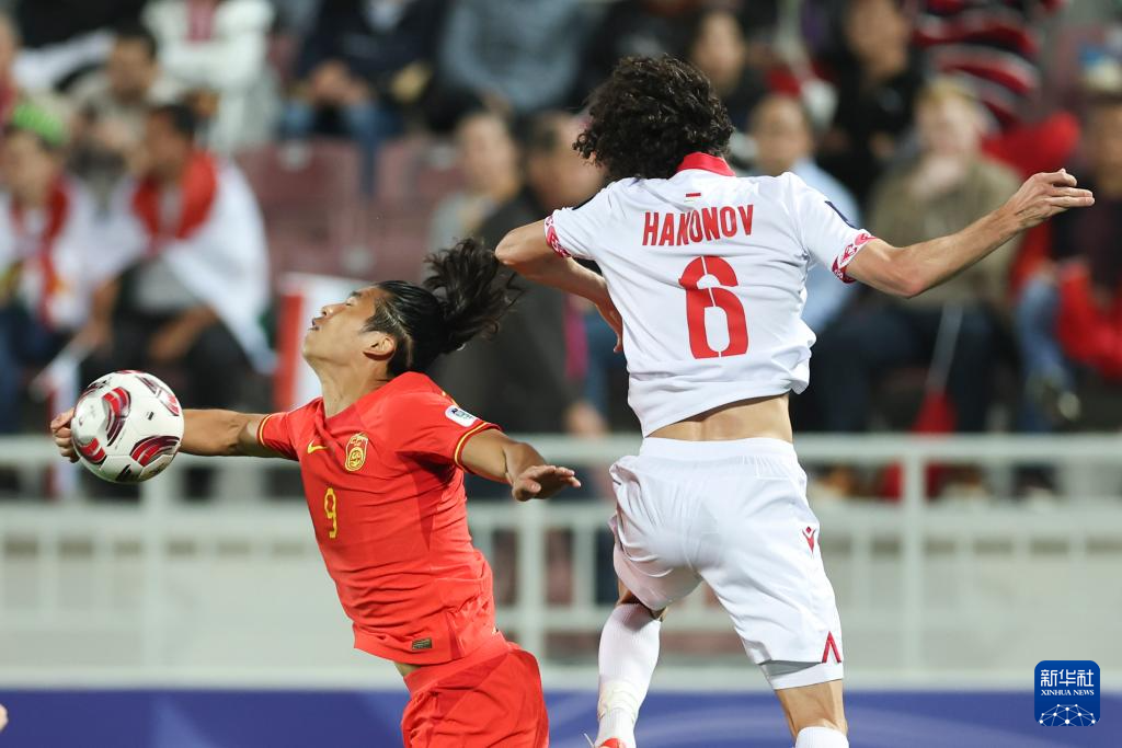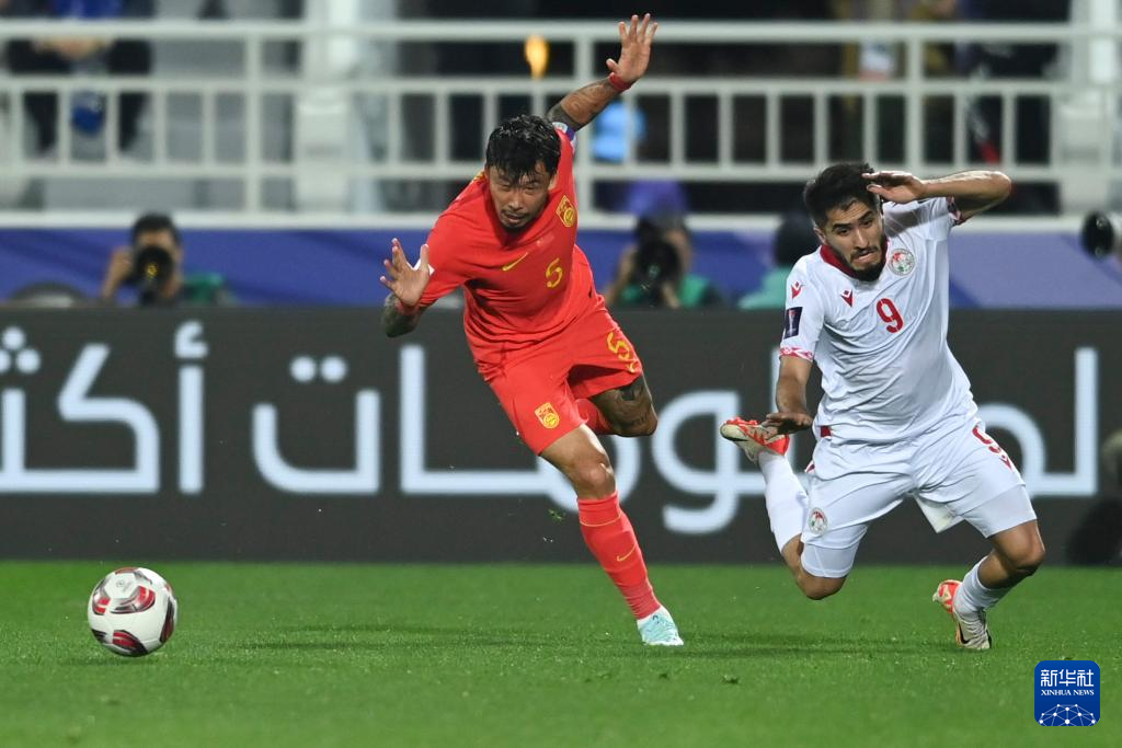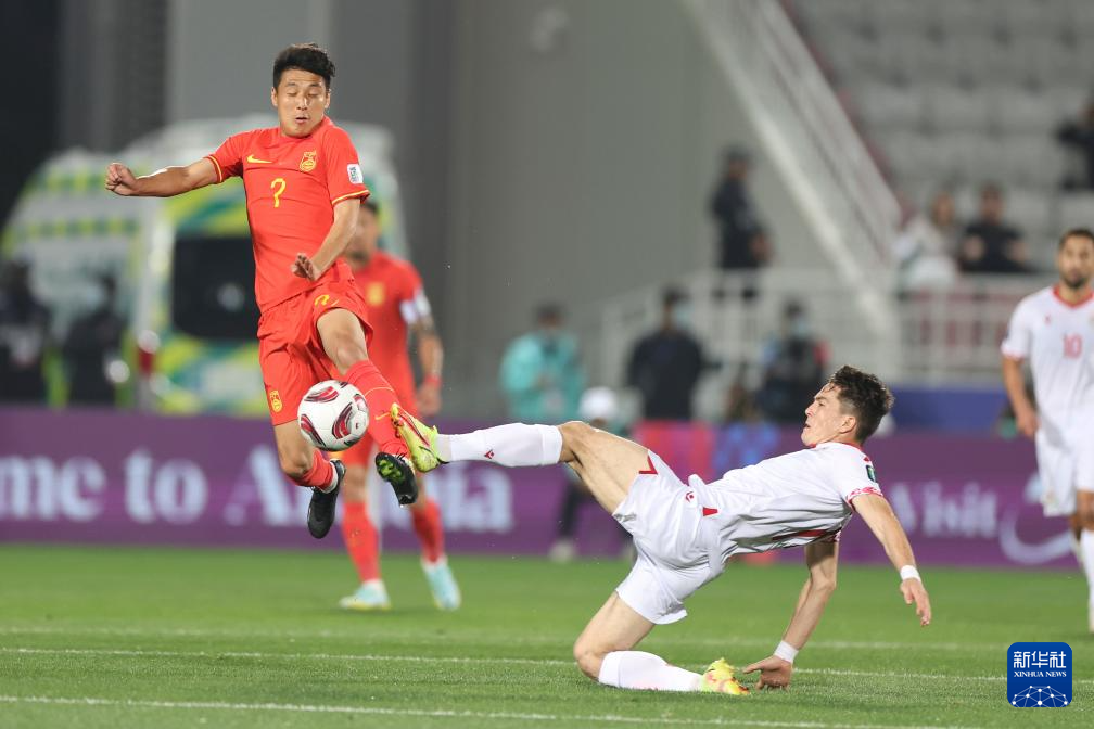 当日,在卡塔尔多哈阿卜杜拉·本·哈里发球场举行的男足亚洲杯小组赛A组比赛中,中国队对阵塔吉克斯坦队。