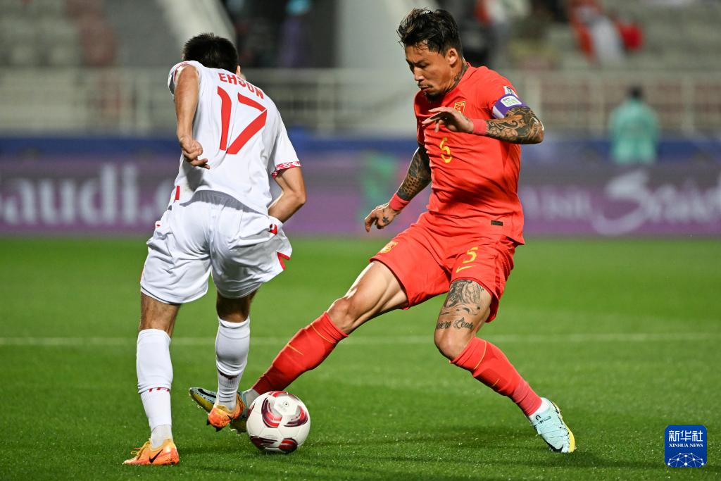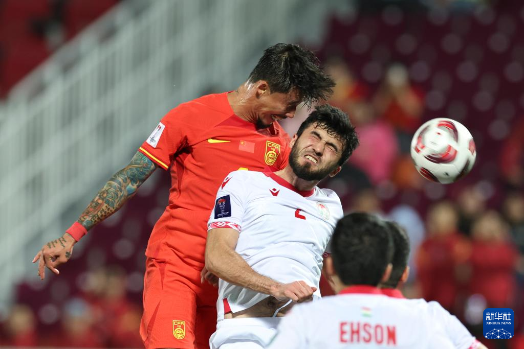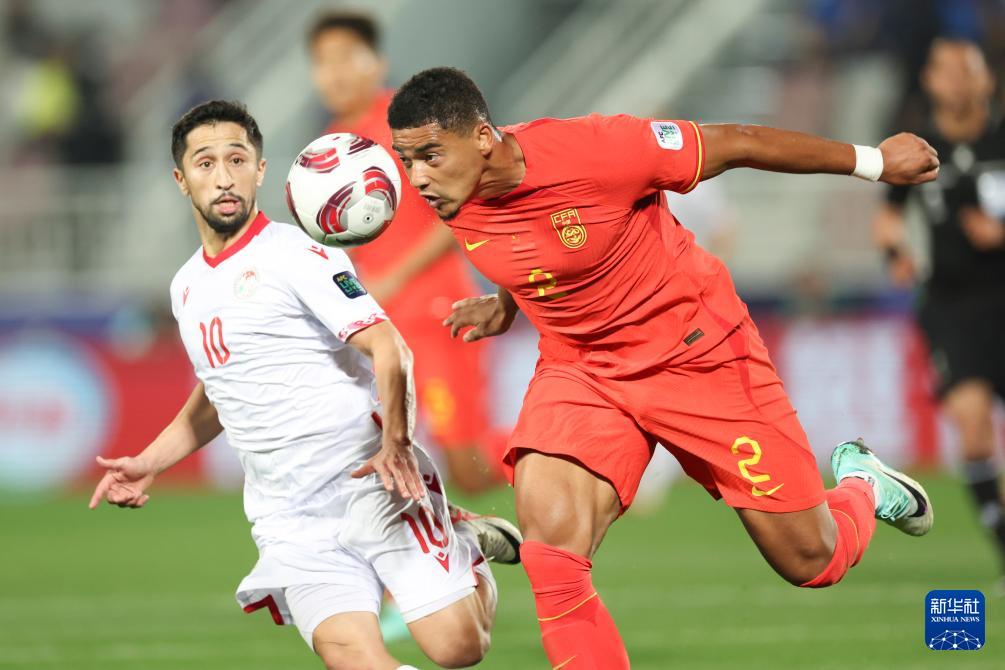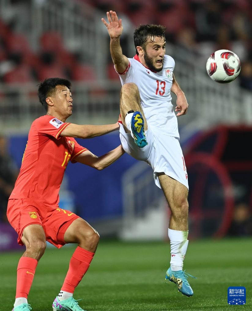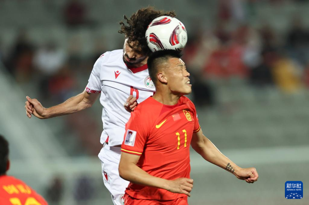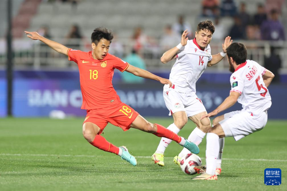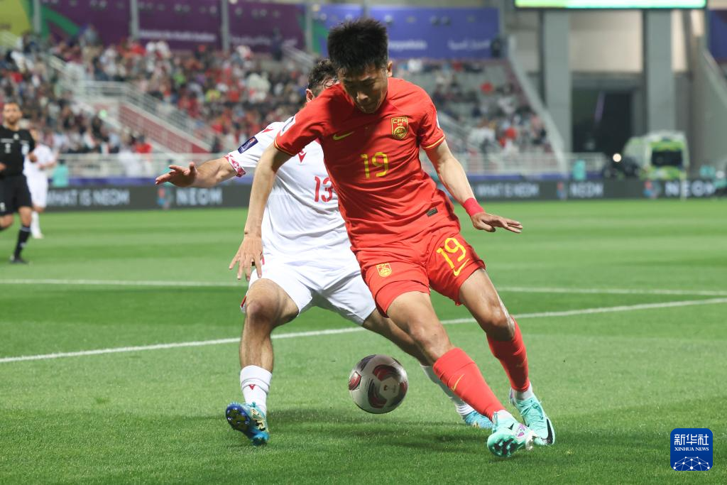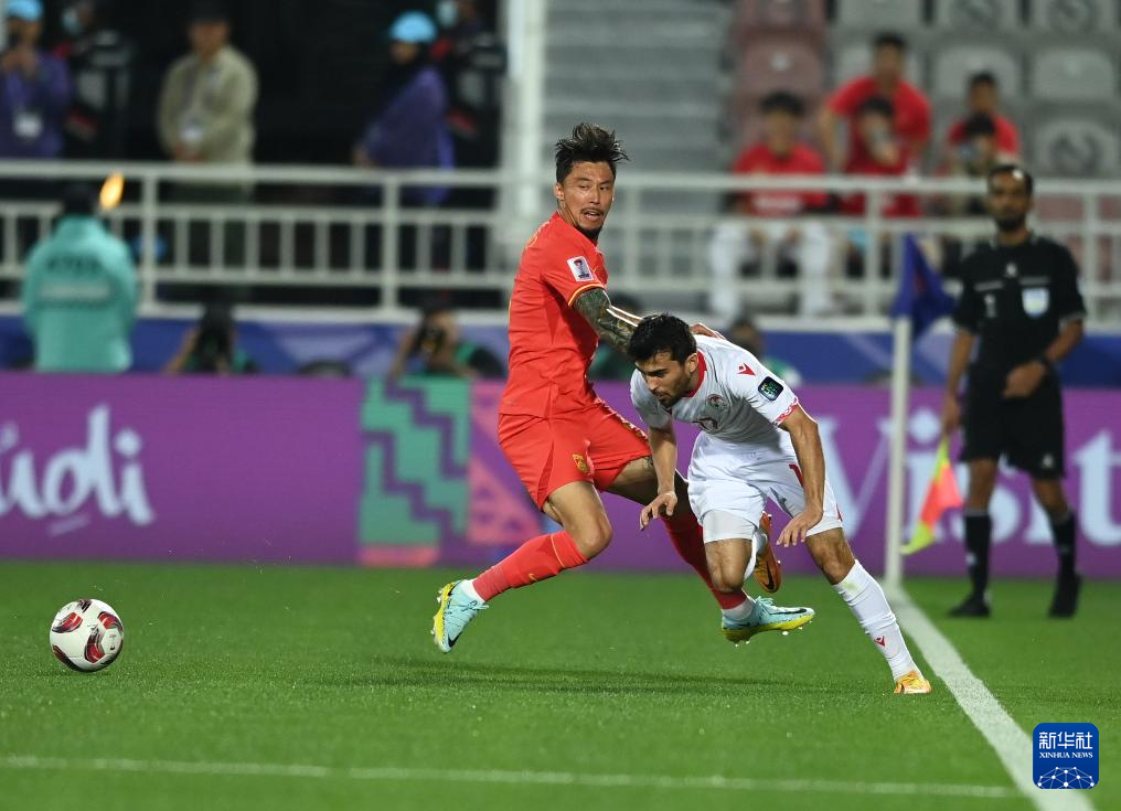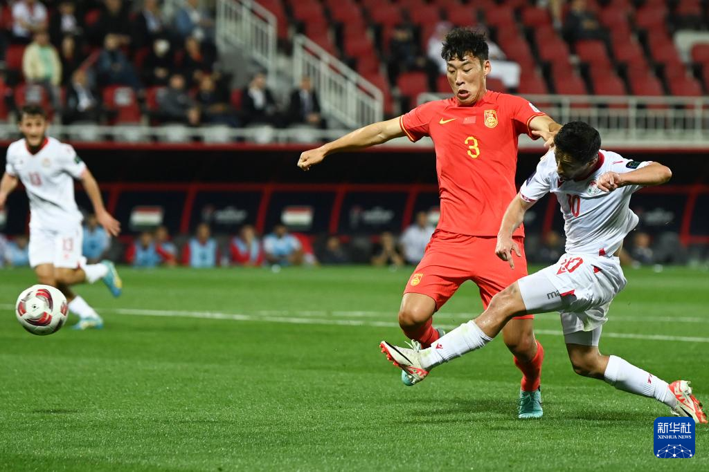 当日,在卡塔尔多哈阿卜杜拉·本·哈里发球场举行的男足亚洲杯小组赛A组比赛中,中国队对阵塔吉克斯坦队。
