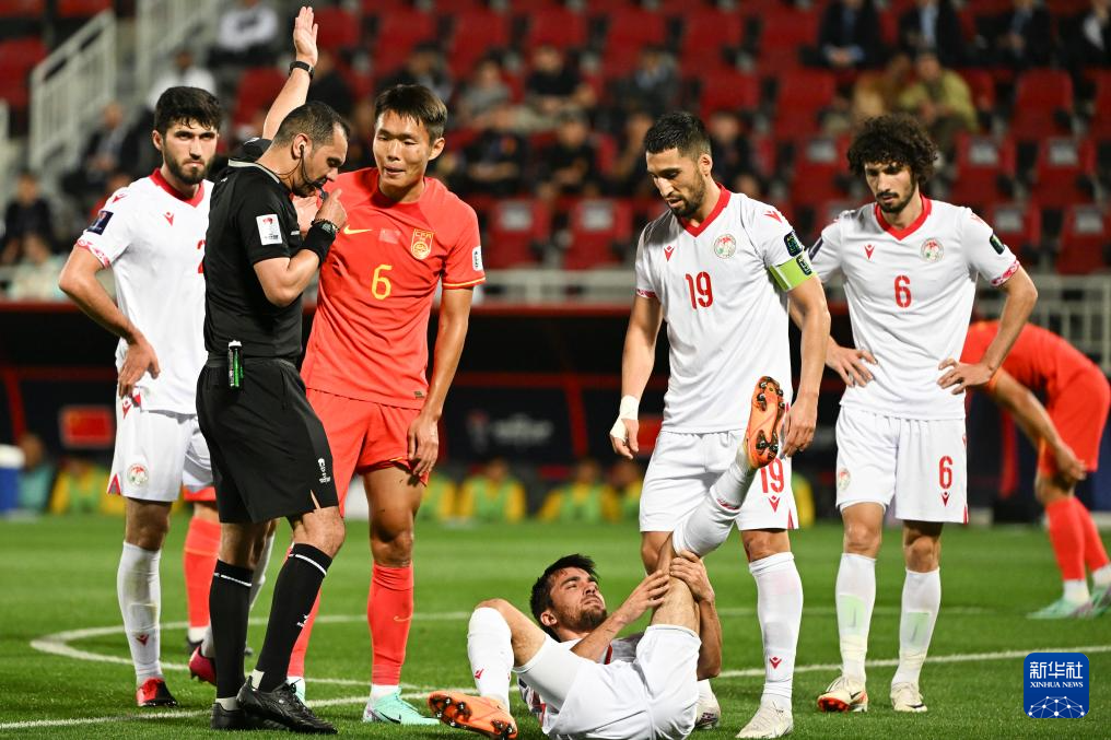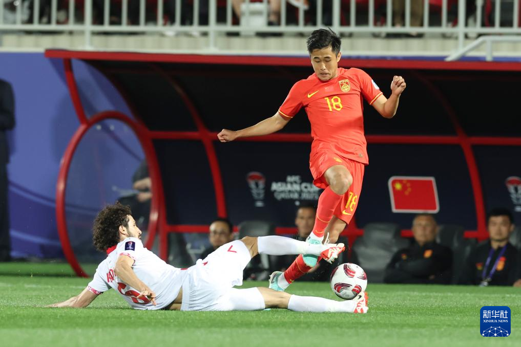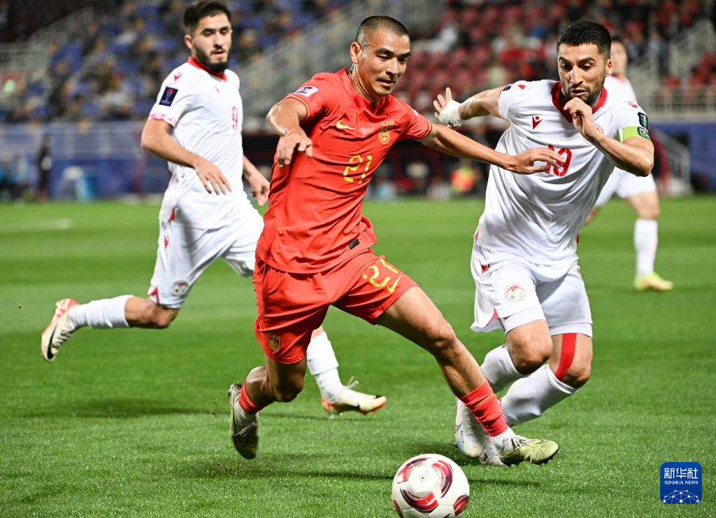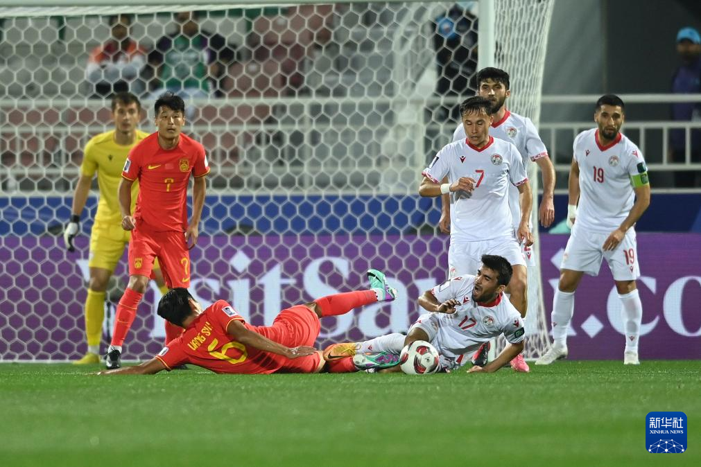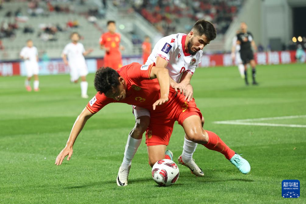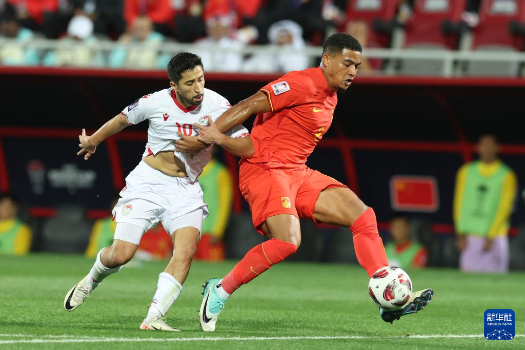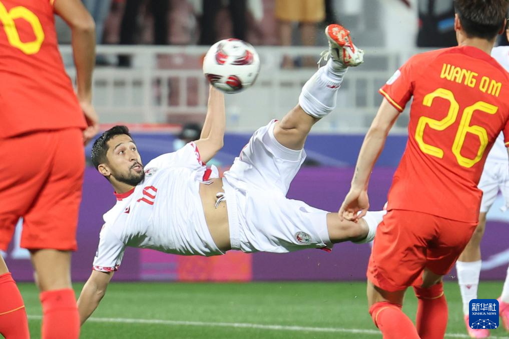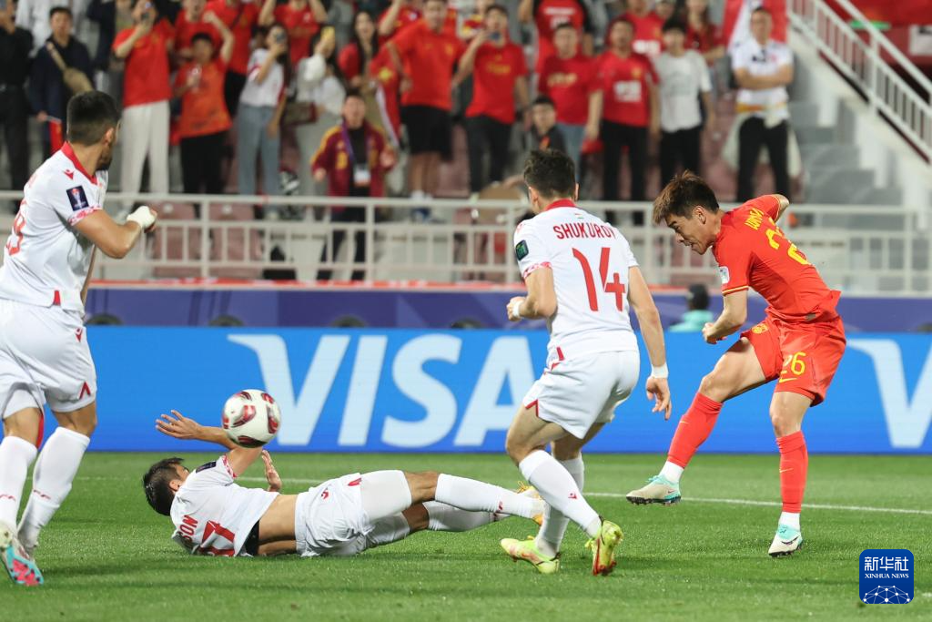 当日,在卡塔尔多哈阿卜杜拉·本·哈里发球场举行的男足亚洲杯小组赛A组比赛中,中国队对阵塔吉克斯坦队。