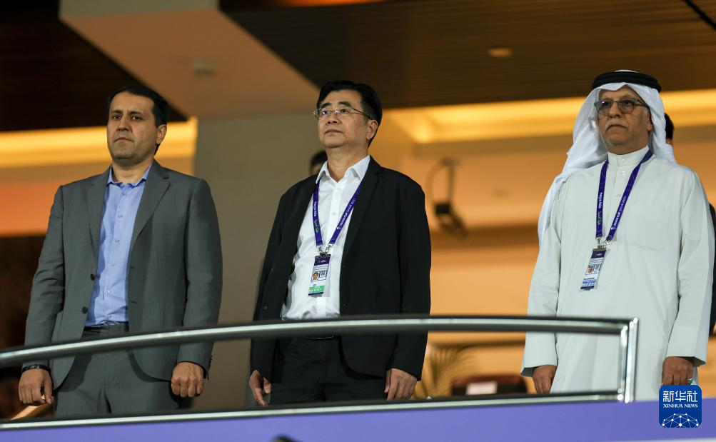 1月13日,中国足协主席宋凯(中)在比赛前。新华社记者 贾浩成 摄