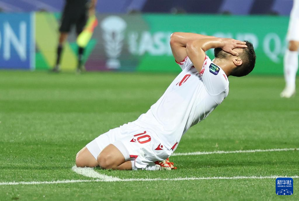 1月13日,塔吉克斯坦队球员贾利洛夫在比赛中错失得分机会后。新华社记者 贾浩成 摄