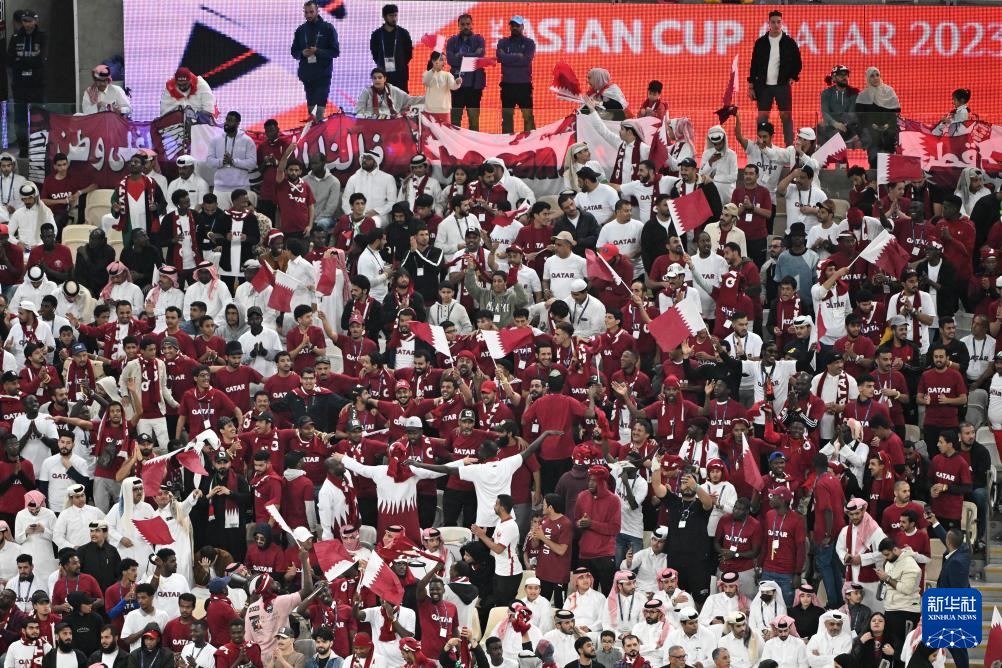 1月12日,卡塔尔队球迷在看台为球队助威。新华社记者 孙凡越 摄