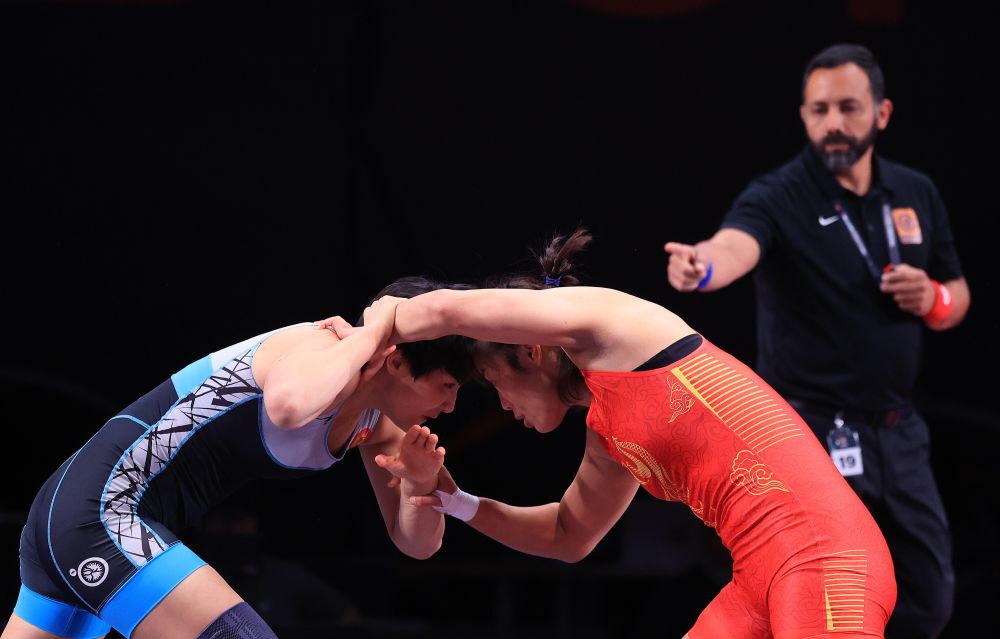 在76公斤级决赛中,中国选手王娟1:2不敌杭州亚运会冠军、吉尔吉斯斯坦选手克济,收获一枚银牌。
