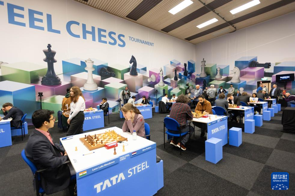 这是1月13日在荷兰维克安泽拍摄的2024年塔塔钢铁国际象棋锦标赛首轮比赛现场。新华社发(西尔维娅·莱德雷尔摄)