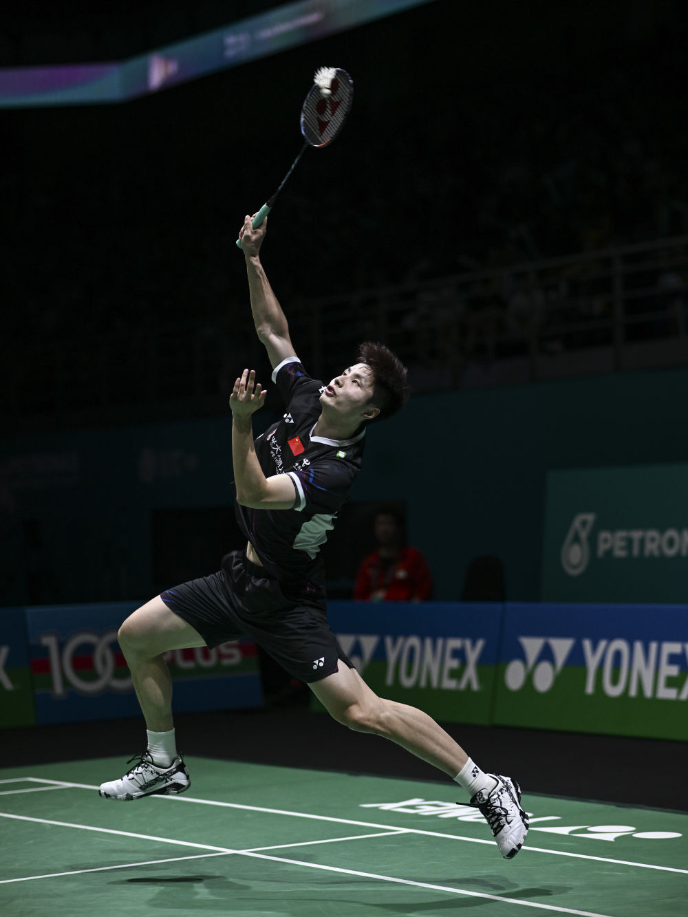 1月14日,石宇奇在男单比赛中。新华社记者 程一恒 摄