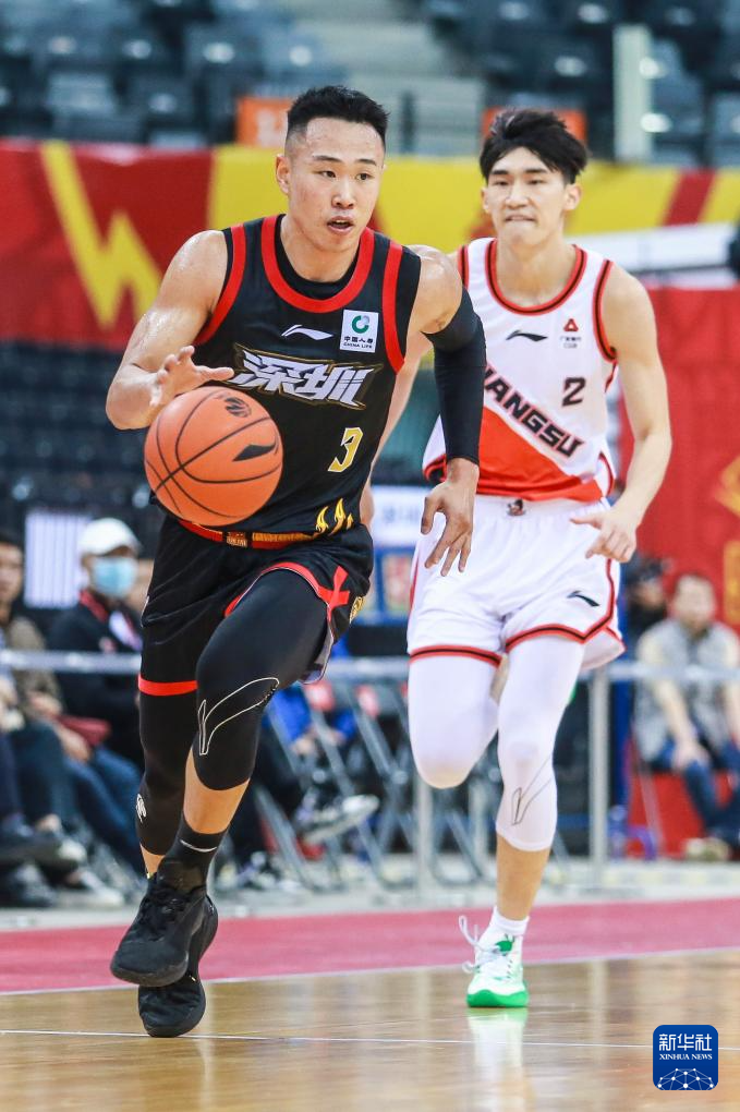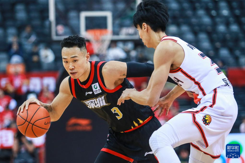 1月13日,深圳马可波罗队球员贺希宁(左)在比赛中持球进攻。新华社发(彭志刚摄)