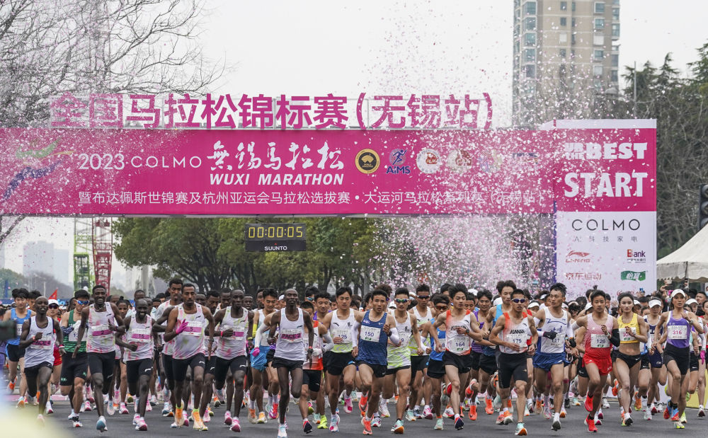 2023年3月19日,2023无锡马拉松参赛选手从起点出发。新华社记者 李博 摄