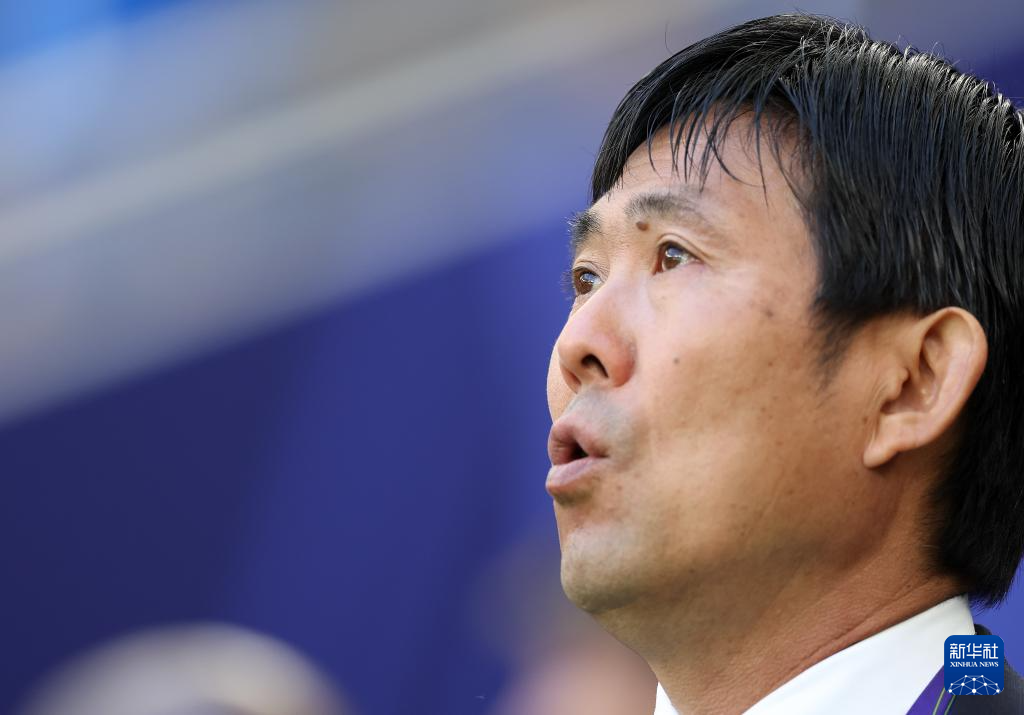 1月14日,日本队主教练森保一在比赛前。新华社记者 曹灿 摄