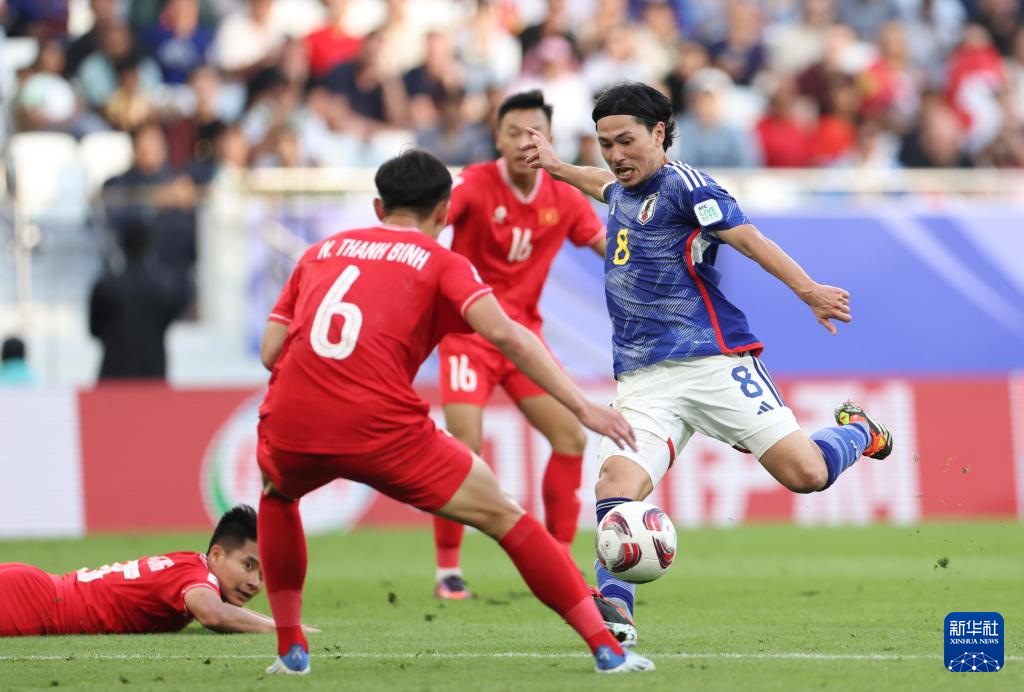 当日,在卡塔尔多哈阿图玛玛球场举行的男足亚洲杯小组赛D组比赛中,日本队4比2战胜越南队。