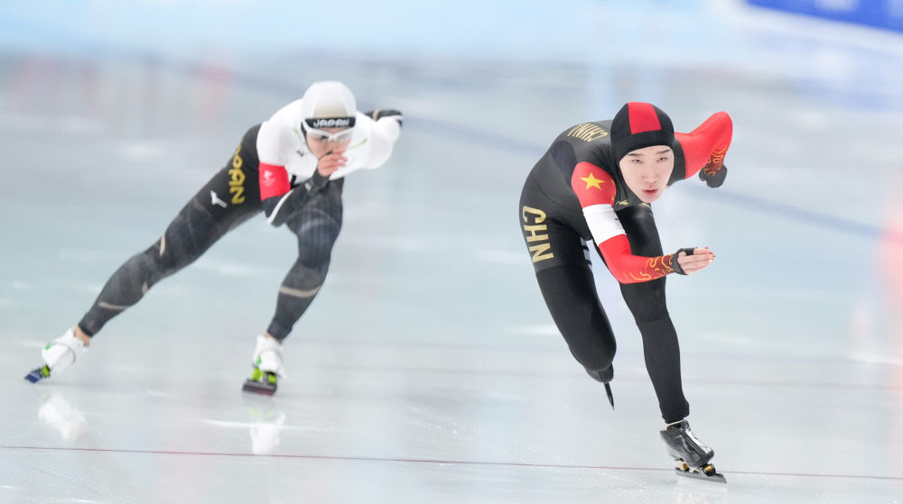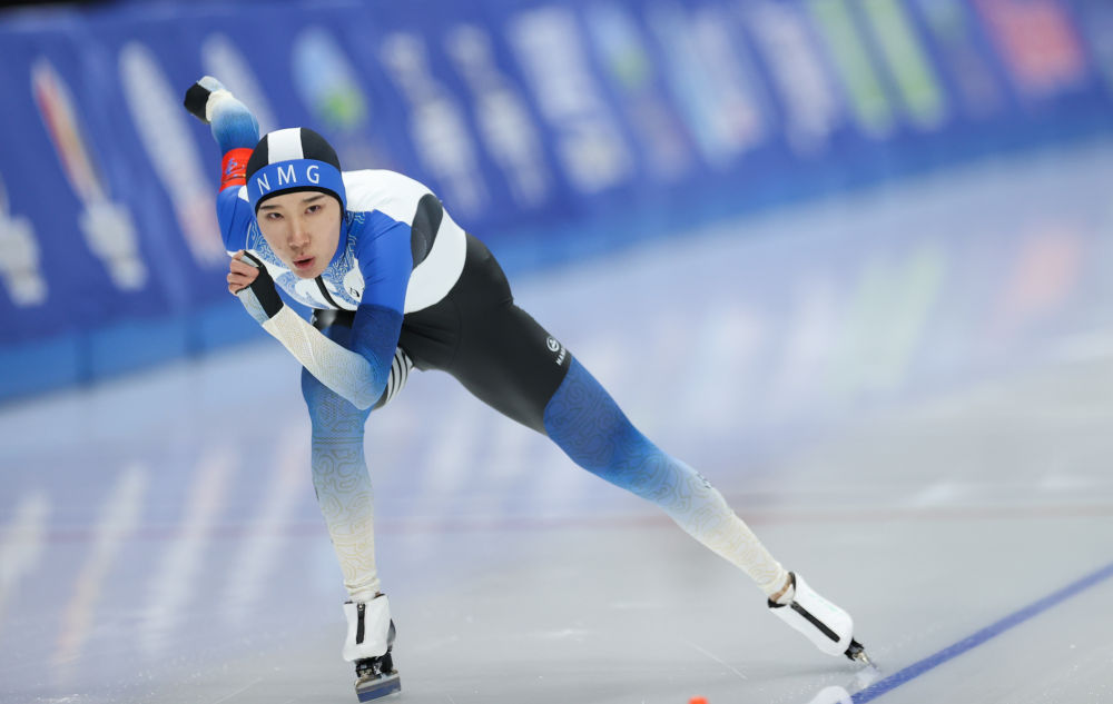 1月11日,韩梅在第十四届全国冬季运动会速度滑冰公开组女子1000米比赛中,她以1分15秒30的成绩获得亚军。新华社记者 王楷焱 摄
