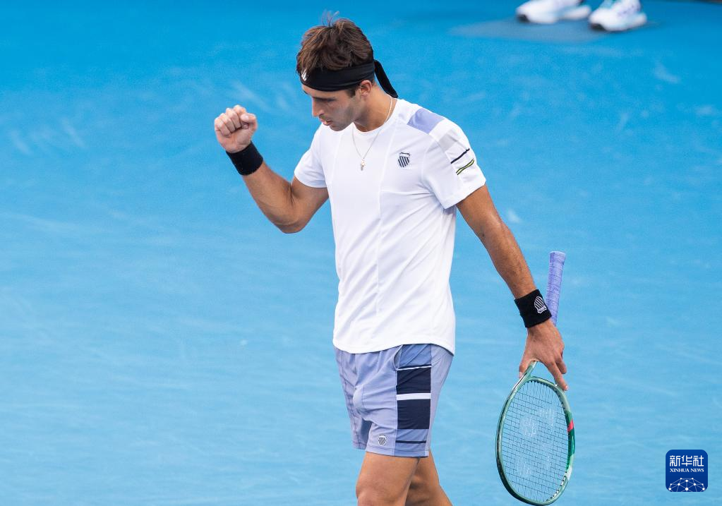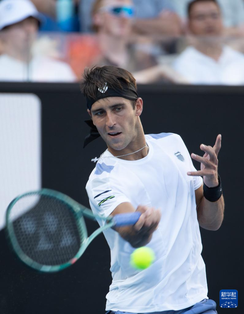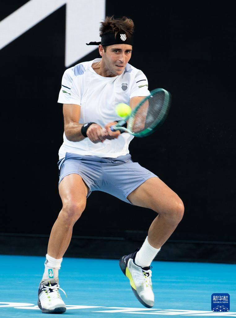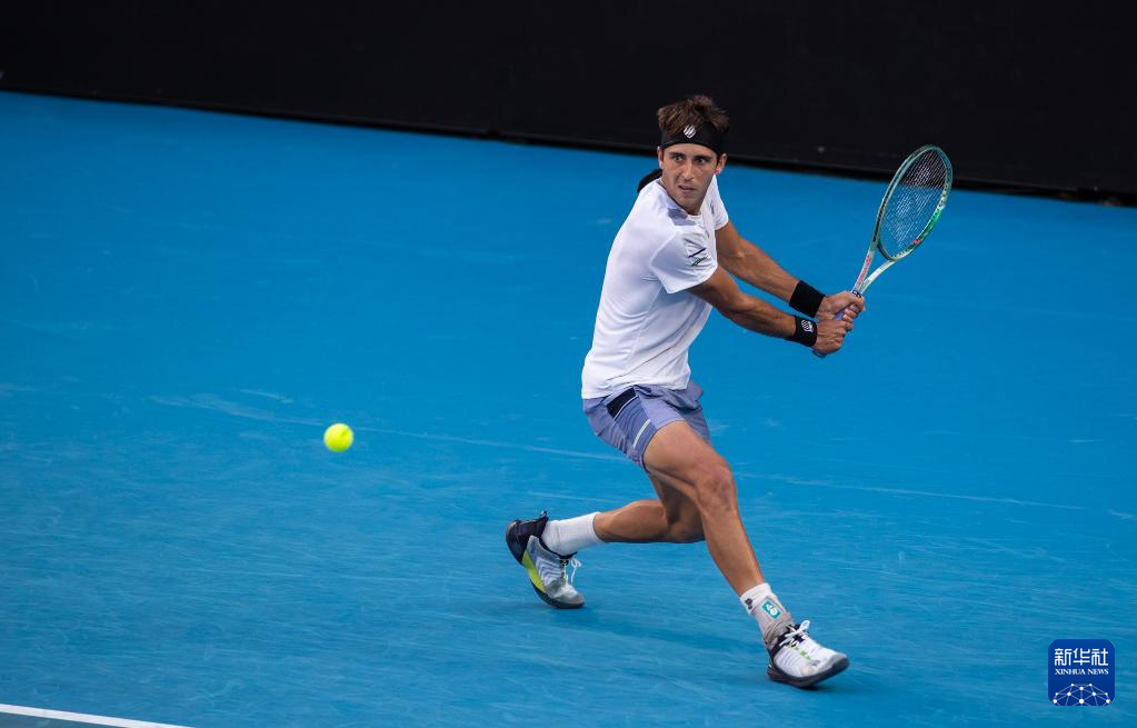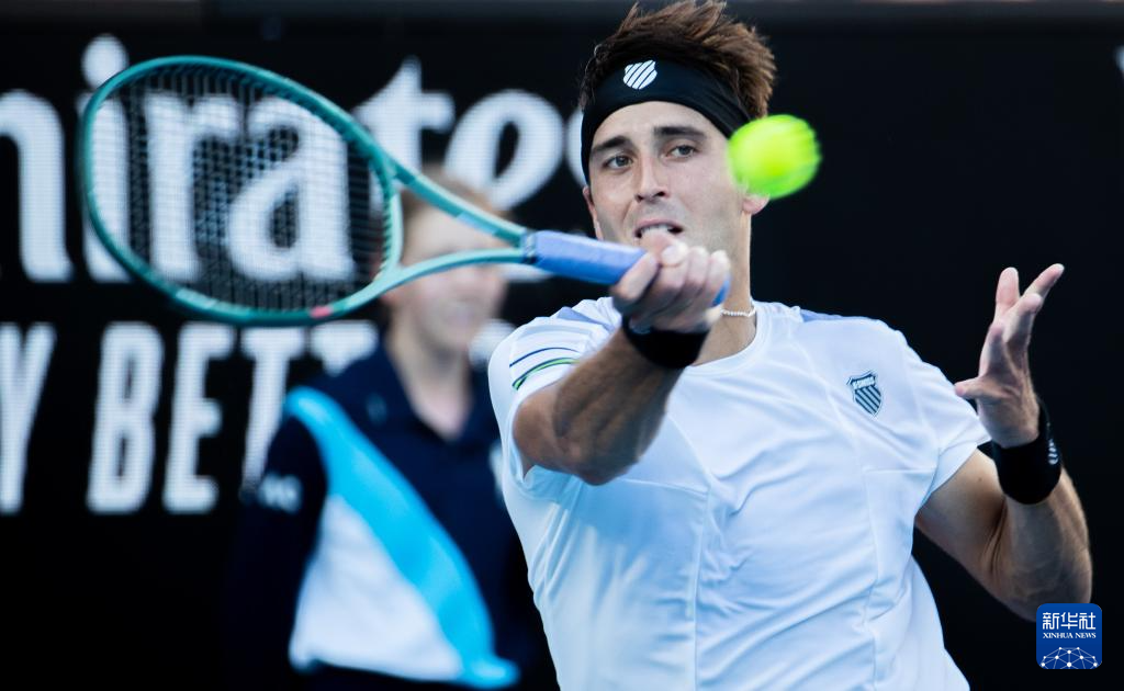 1月15日,埃切韦里在比赛中回球。新华社发(胡泾辰摄)