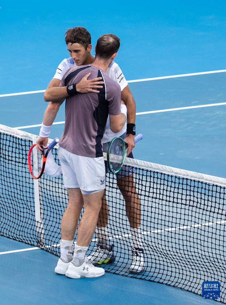 1月15日,穆雷(前)与埃切韦里在赛后拥抱。新华社发(胡泾辰摄)