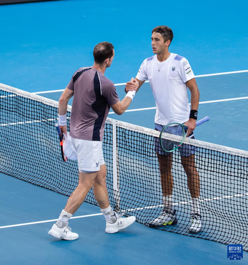1月15日,穆雷(左)与埃切韦里在赛后握手。新华社发(胡泾辰摄)