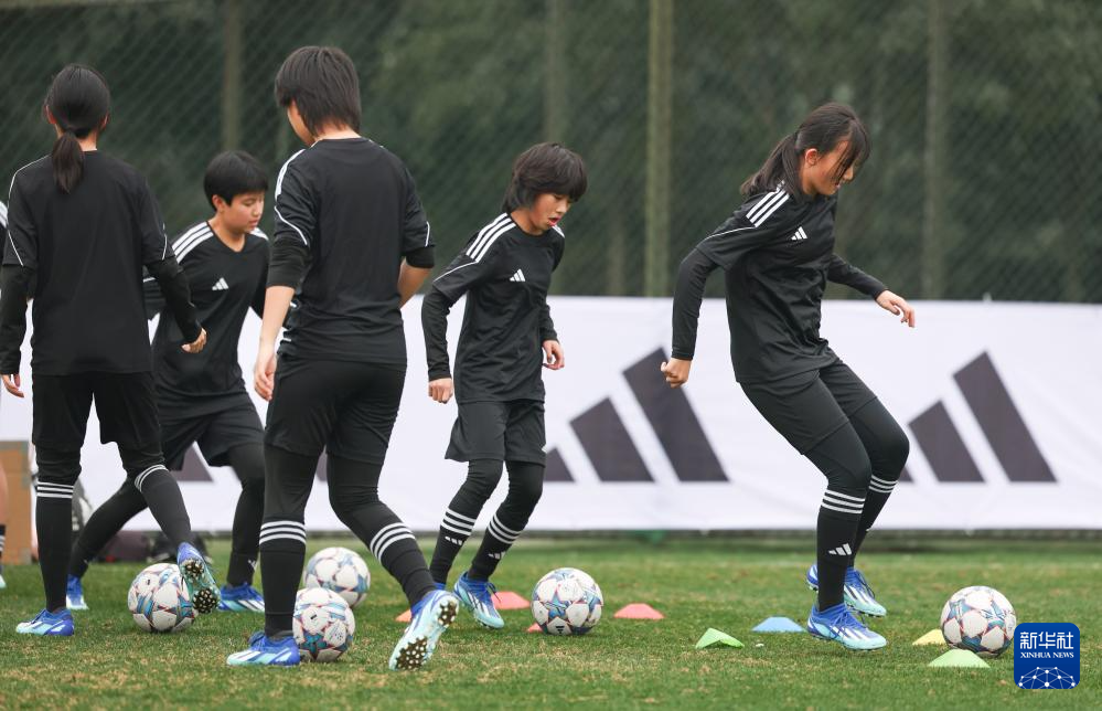 1月15日,来自陕西的U15女足队员们在成都市温江足球基地训练。新华社记者 江宏景 摄