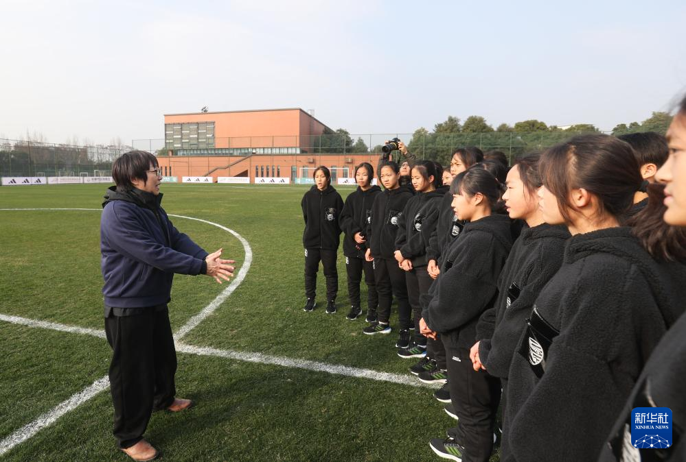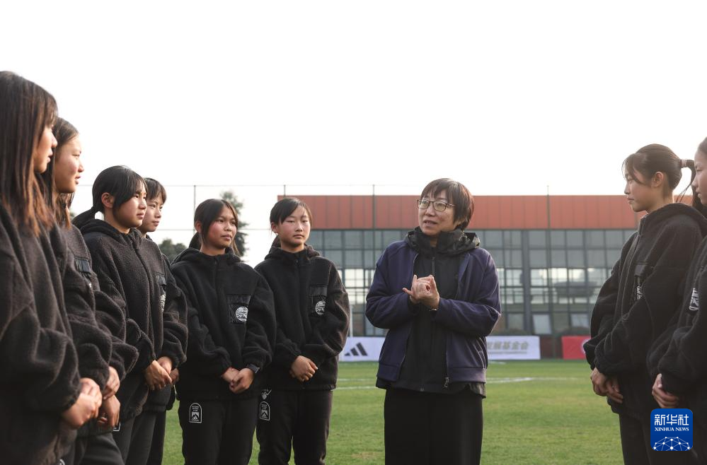1月15日,中国足球协会副主席孙雯和队员们交流。新华社记者 江宏景 摄