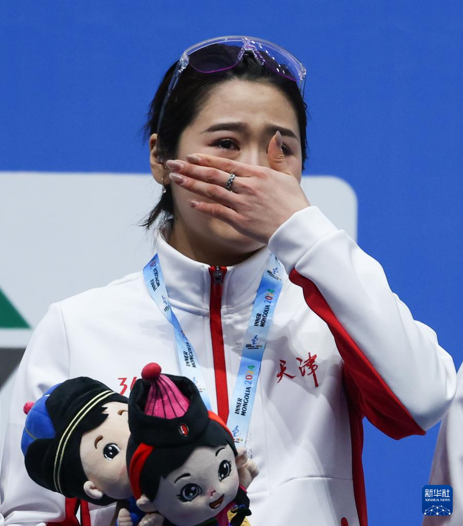 1月14日,天津队选手马语含在颁奖仪式上落泪。新华社记者 王楷焱 摄