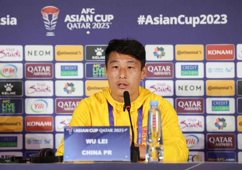 1月16日,中国队球员武磊在发布会上。新华社记者 丁汀 摄