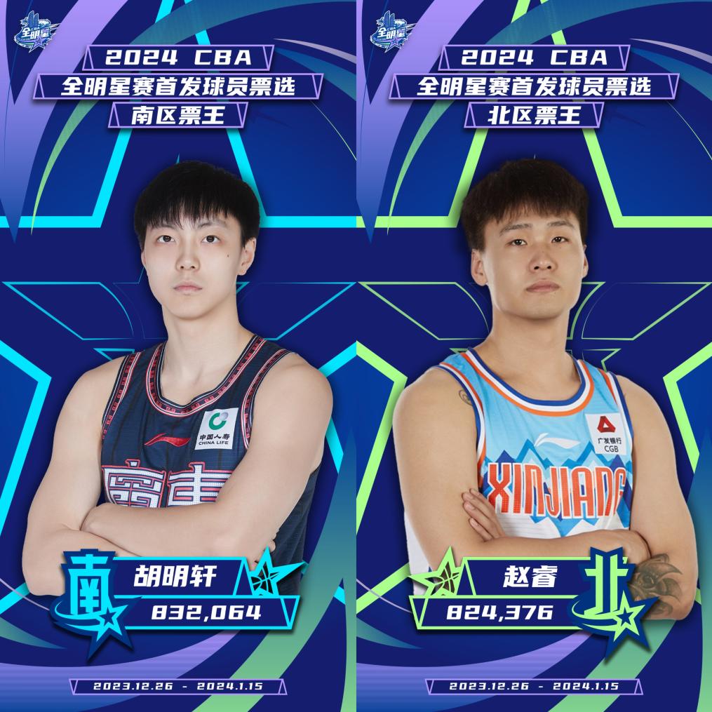新华社北京1月16日电(记者 林德韧) CBA联赛16日公布了2024CBA全明星赛首发球员投票结果,广东队的胡明轩和新疆队的赵睿分别当选南、北区“票王”。