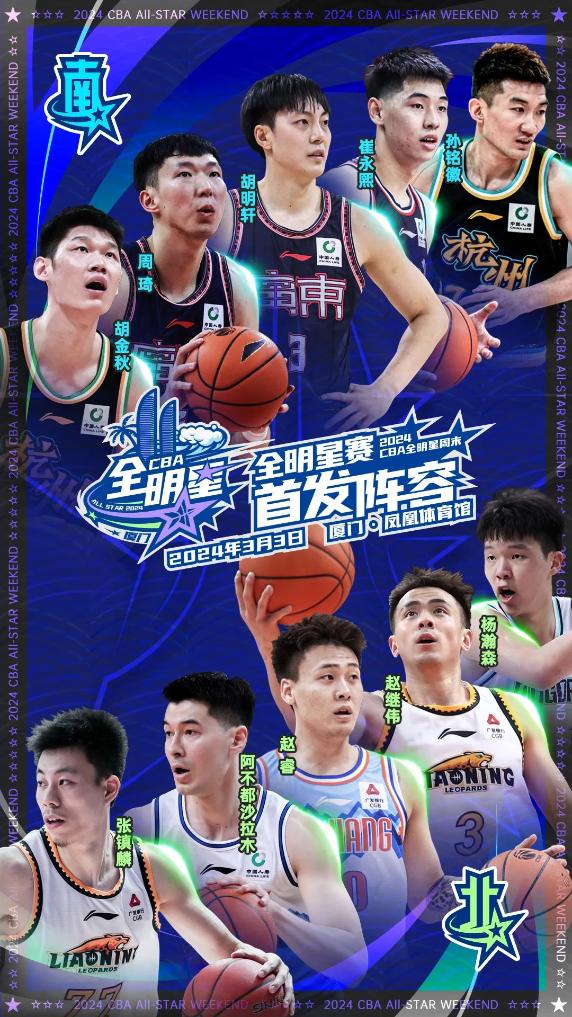 综合球迷投票和媒体投票,本届全明星赛南区首发球员为周琦(广东)、胡金秋(广厦)、崔永熙(广州)、胡明轩(广东)和孙铭徽(广厦),北区首发球员为阿不都沙拉木(新疆)、杨瀚森(青岛)、张镇麟(辽宁)、赵睿(新疆)和赵继伟(辽宁)。