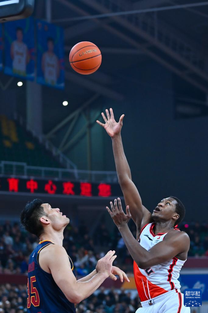 1月15日,江苏肯帝亚队球员卡巴(右)在比赛中投篮。新华社记者 杨晨光 摄