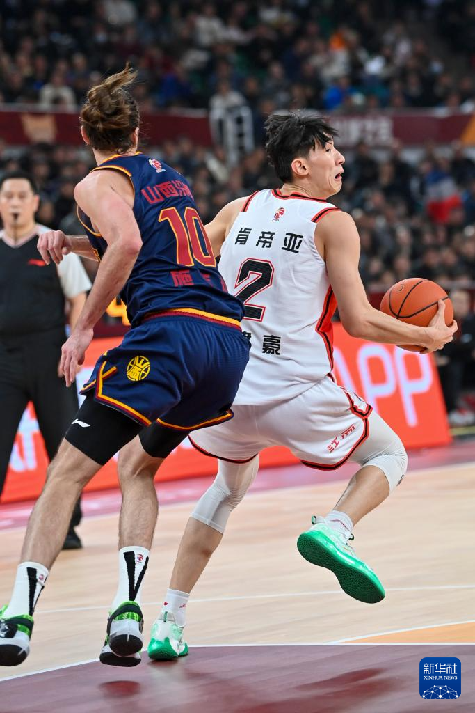 当日,在2023-2024赛季中国男子篮球职业联赛(CBA)常规赛第30轮比赛中,山西汾酒队主场105比86战胜江苏肯帝亚队。
