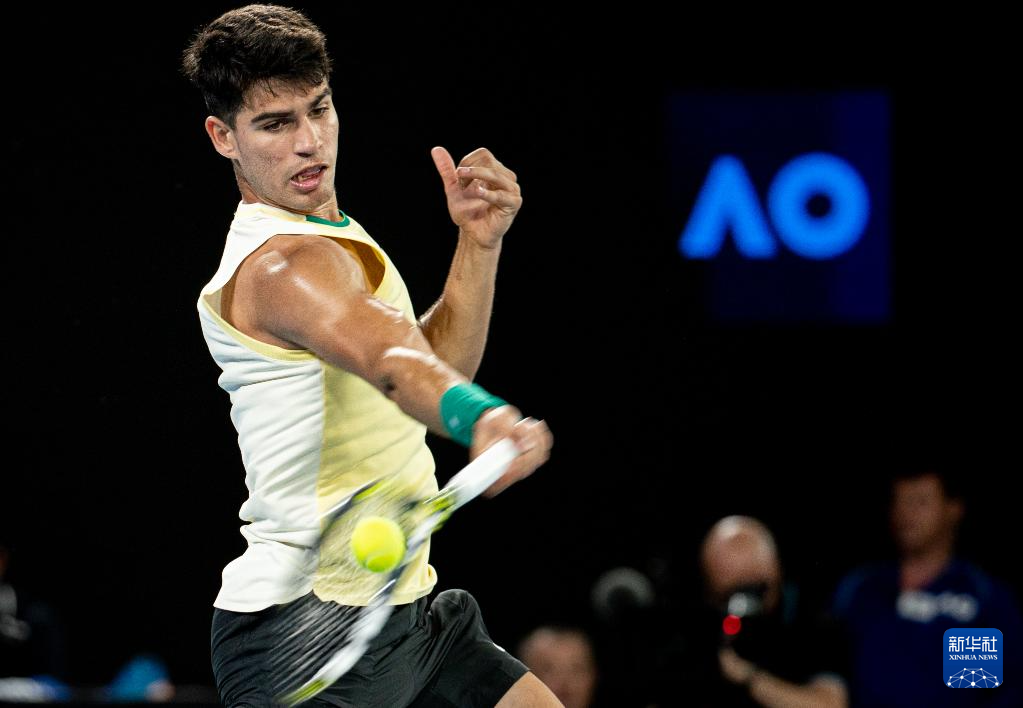1月16日,阿尔卡拉斯在比赛中。新华社发(胡泾辰摄)