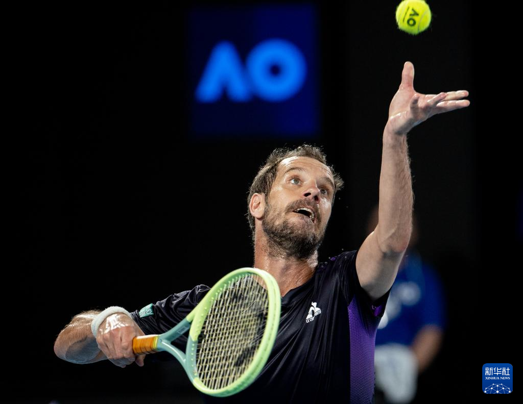 1月16日,加斯奎特在比赛中发球。新华社发(胡泾辰摄)