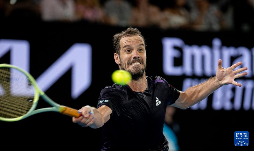 1月16日,加斯奎特在比赛中回球。新华社发(胡泾辰摄)