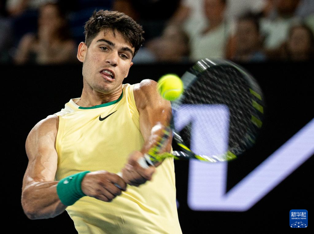 1月16日,阿尔卡拉斯在比赛中回球。新华社发(胡泾辰摄)