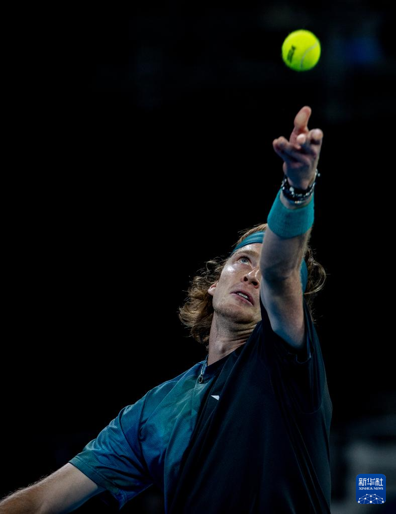 1月17日,卢布列夫在比赛中发球。新华社发(胡泾辰摄)