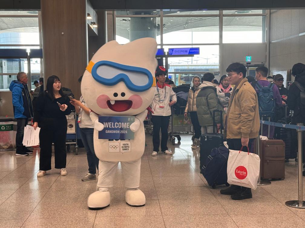 1月16日,当新华社报道团走出韩国首尔仁川机场,本届冬青奥会的吉祥物“萌吉奥”前来迎接。据说,这个以雪球为原型的吉祥物,正是出自2018年平昌冬奥会吉祥物和冬残奥会吉祥物在“打雪仗”时丢出的一颗雪球。