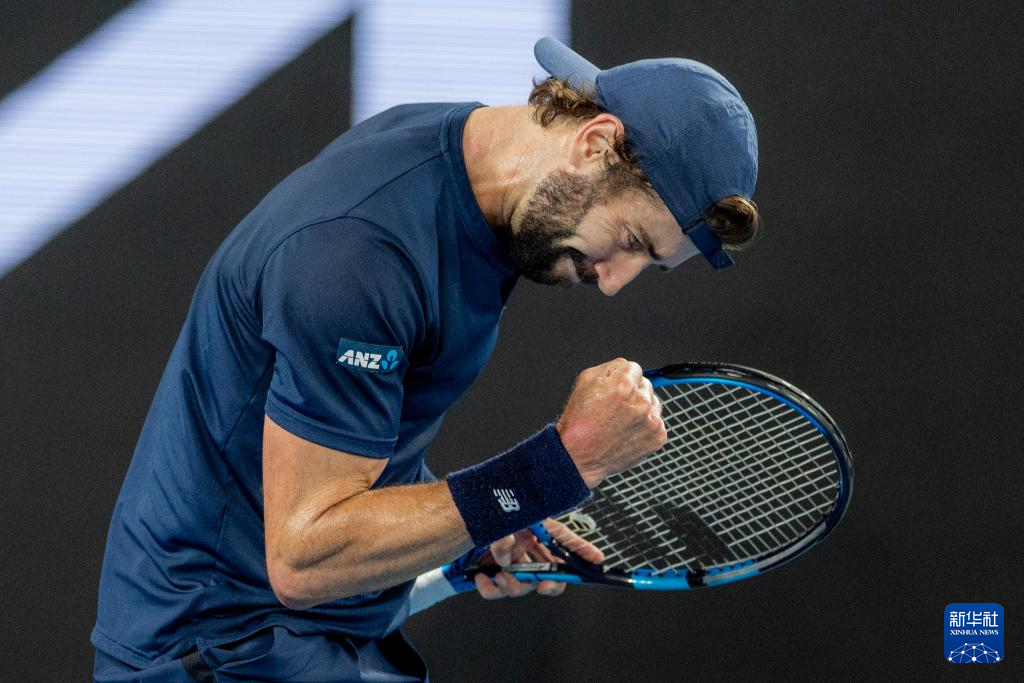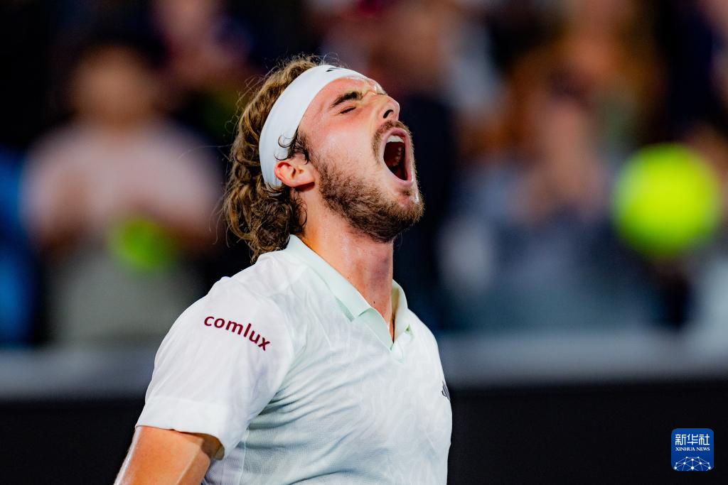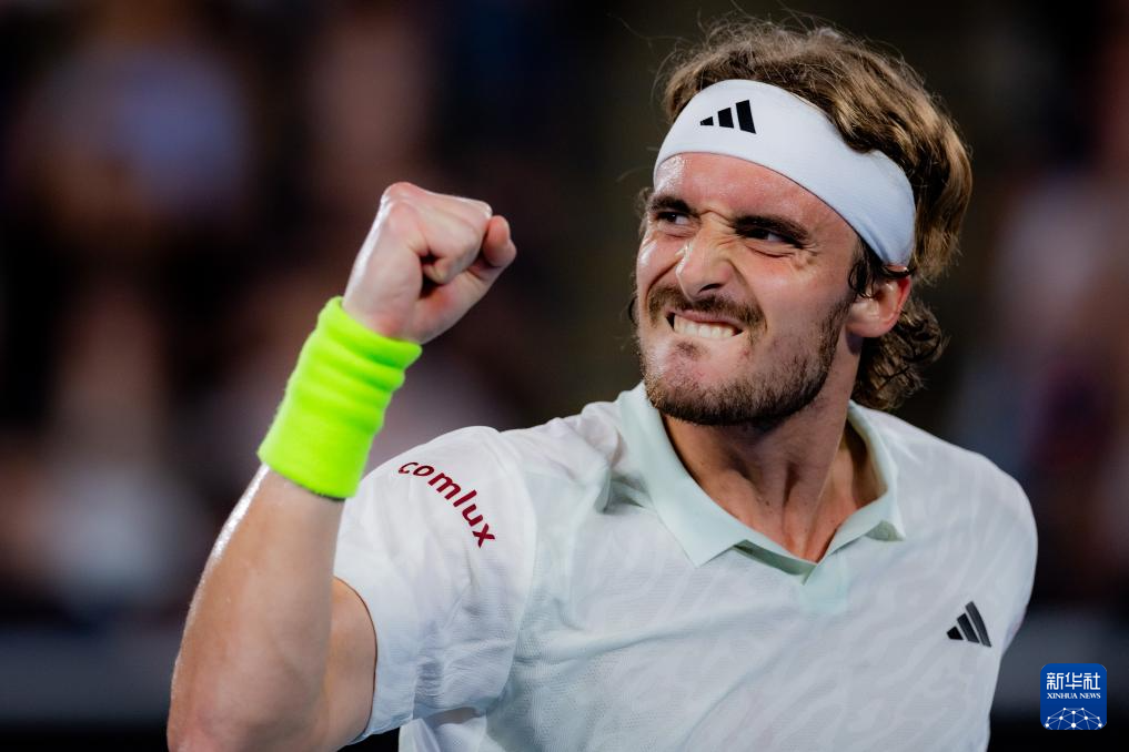 1月17日,齐齐帕斯庆祝胜利。新华社发(储晨摄)