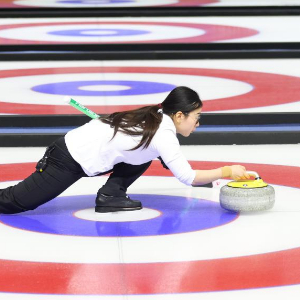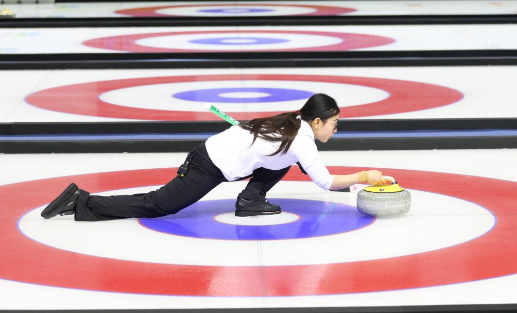 1月12日,文馨悦在比赛中掷壶。在第十四届全国冬季运动会冰壶青年组混双金牌赛中,黑龙江队选手李思霖/文馨悦夺得金牌。新华社记者 王楷焱 摄