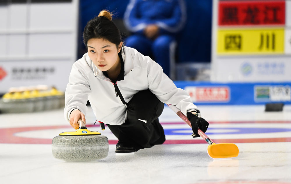 1月17日,四川队选手崔欣然在比赛中掷壶。新华社记者 刘磊 摄
