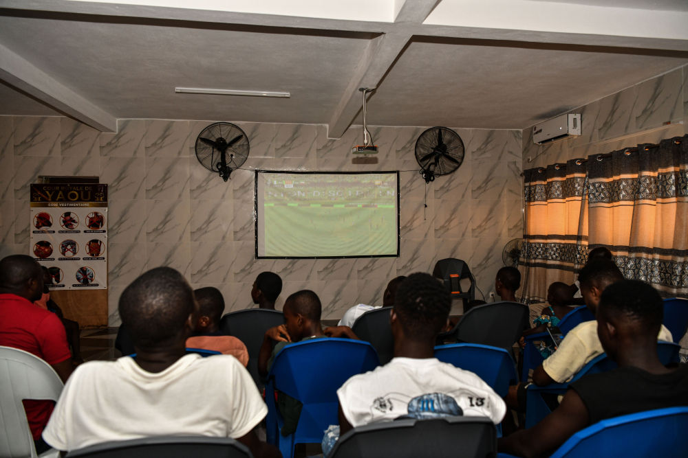 当地时间13日晚上8点,在阿比让以东40多公里的亚乌村,数十位当地村民正围坐在村子里的活动室,观看今年非洲杯的第一场赛事转播,科特迪瓦对战几内亚比绍。