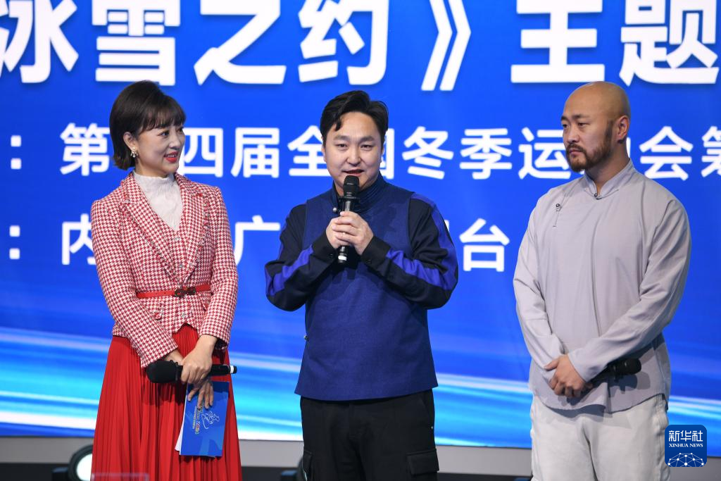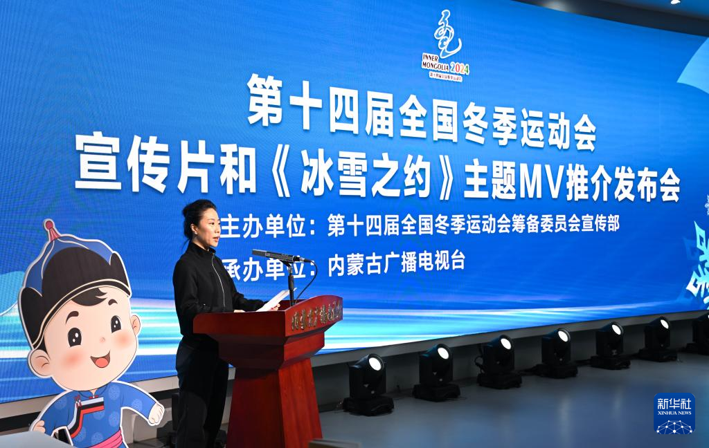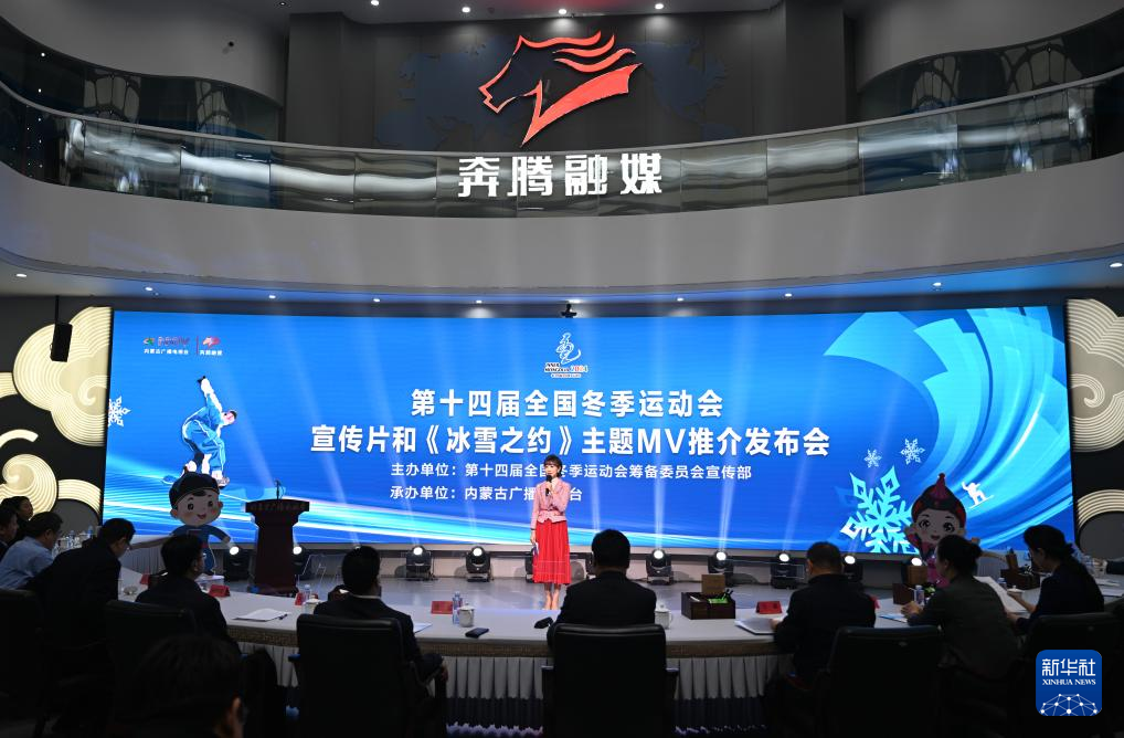 这是1月17日拍摄的第十四届全国冬季运动会宣传片和《冰雪之约》主题MV推介发布会现场。新华社记者 贝赫 摄