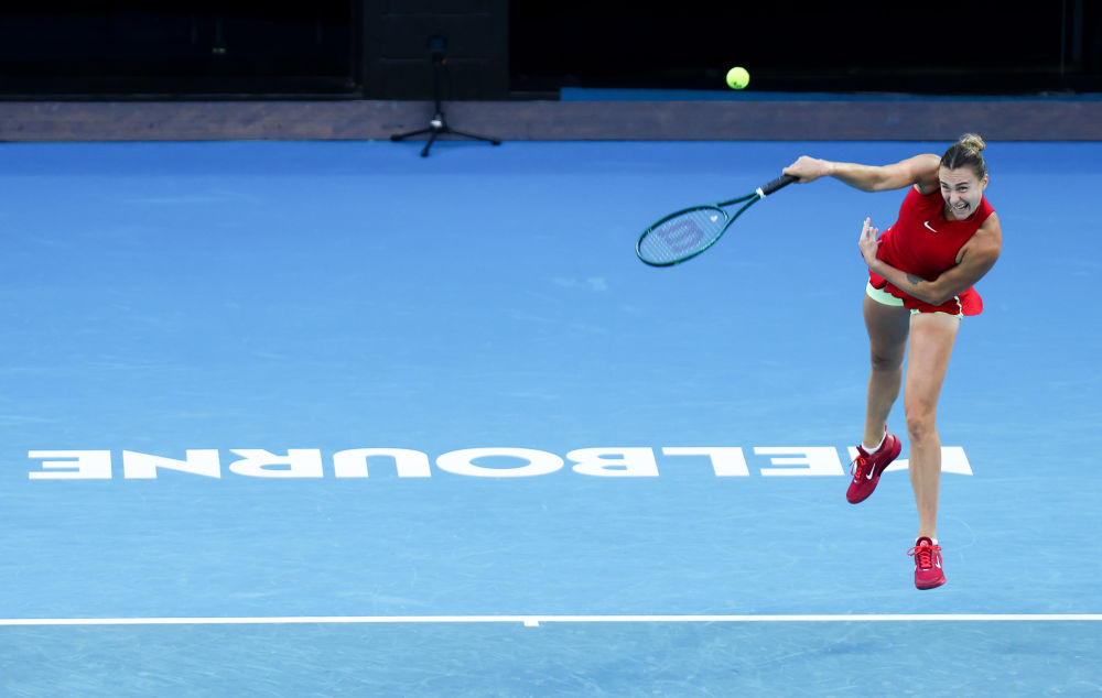 1月17日,萨巴伦卡在比赛中发球。新华社记者 马平 摄