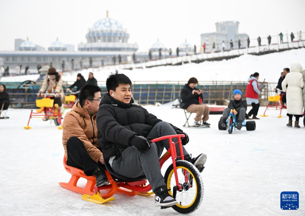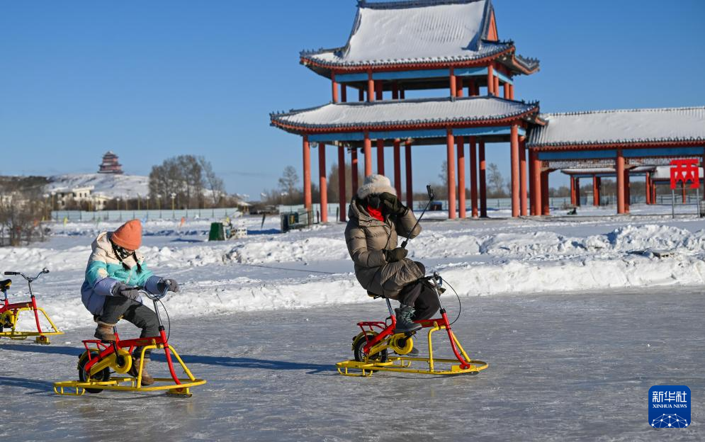 1月18日,市民在内蒙古赛马场骑冰上自行车。新华社记者 贝赫 摄