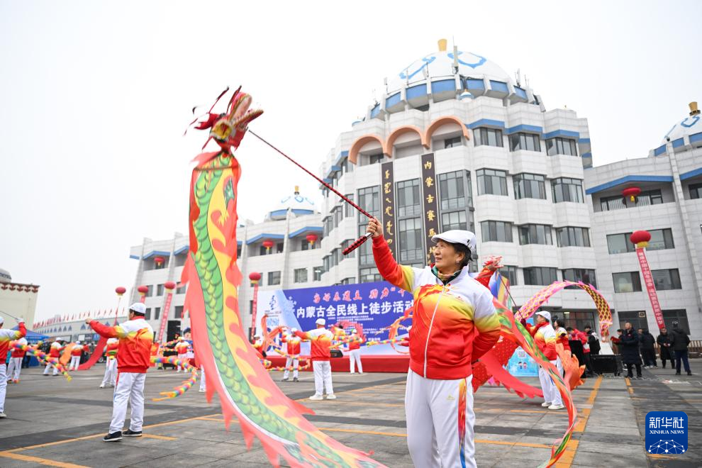 1月18日,市民参加“当好东道主 助力十四冬”内蒙古全民线上徒步活动启动仪式。新华社记者 贝赫 摄