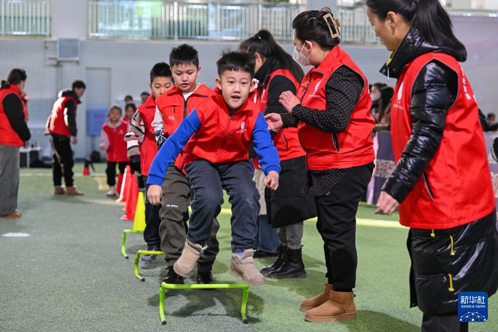1月18日,儿童在呼伦贝尔学院体育馆参加趣味体能比赛。新华社记者 刘磊 摄